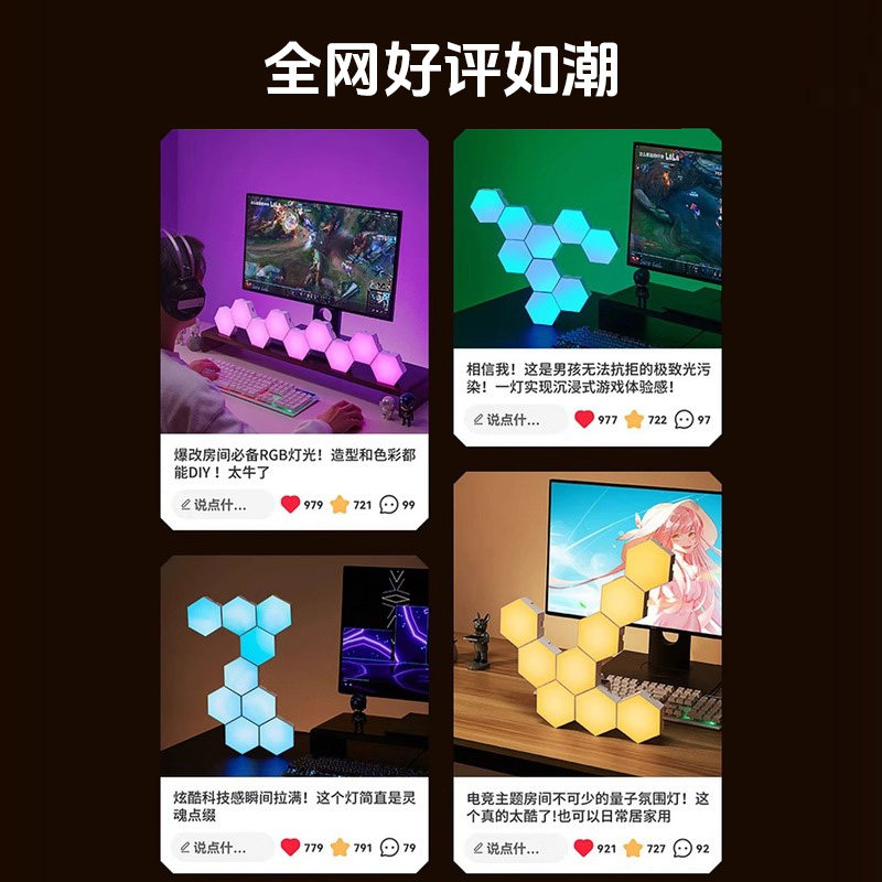 电竞房氛围灯智能RGB量子灯奇光板声控蜂窝壁灯夜灯拾音卧室灯光