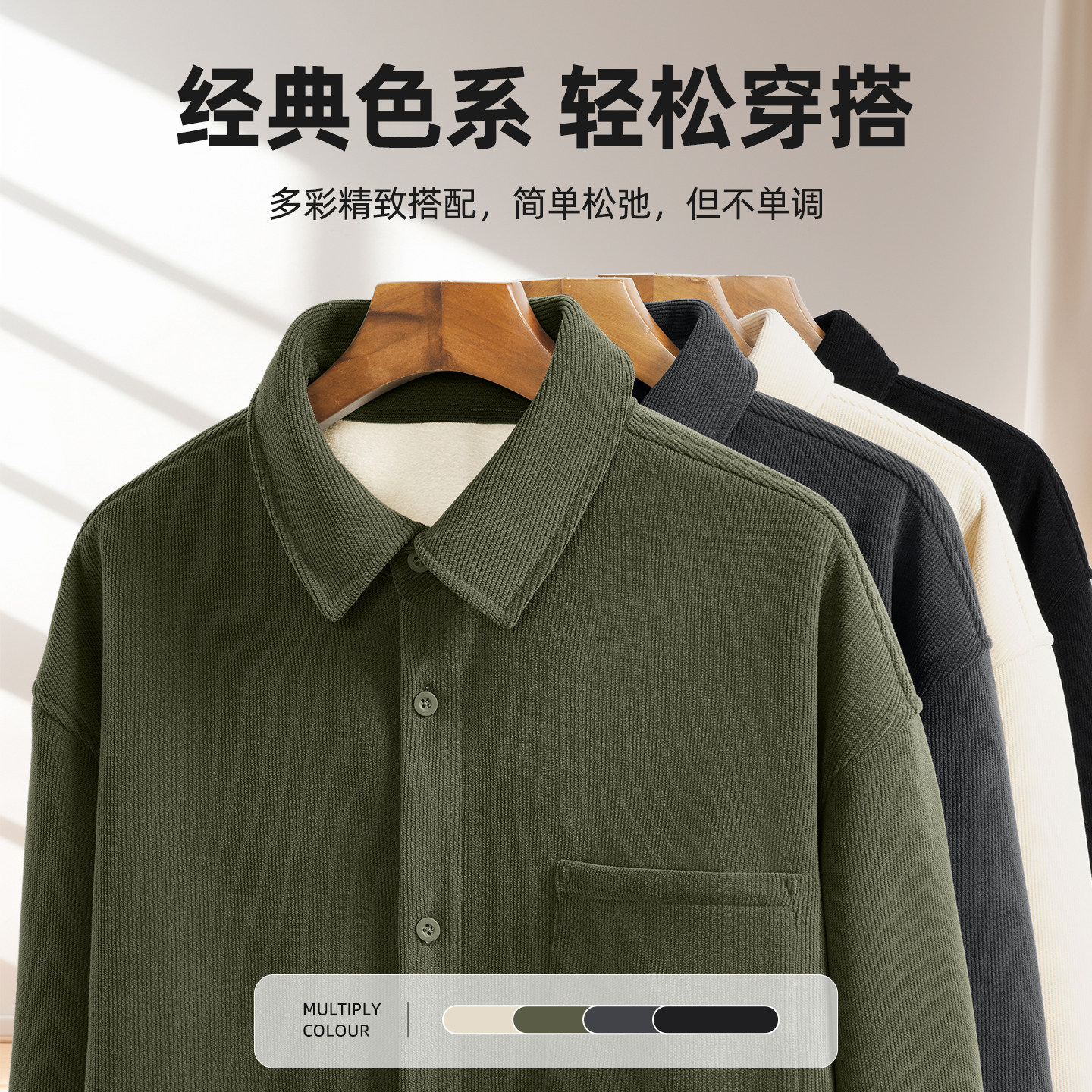 真维斯衬衫男士2026新款时尚加绒外套男款灯芯绒冬季保暖衬衣男Q