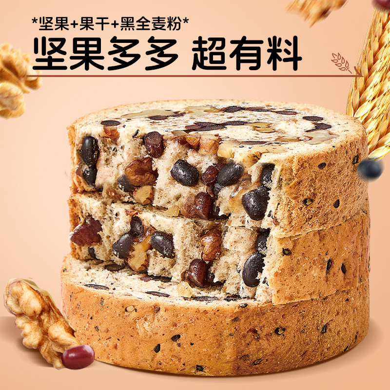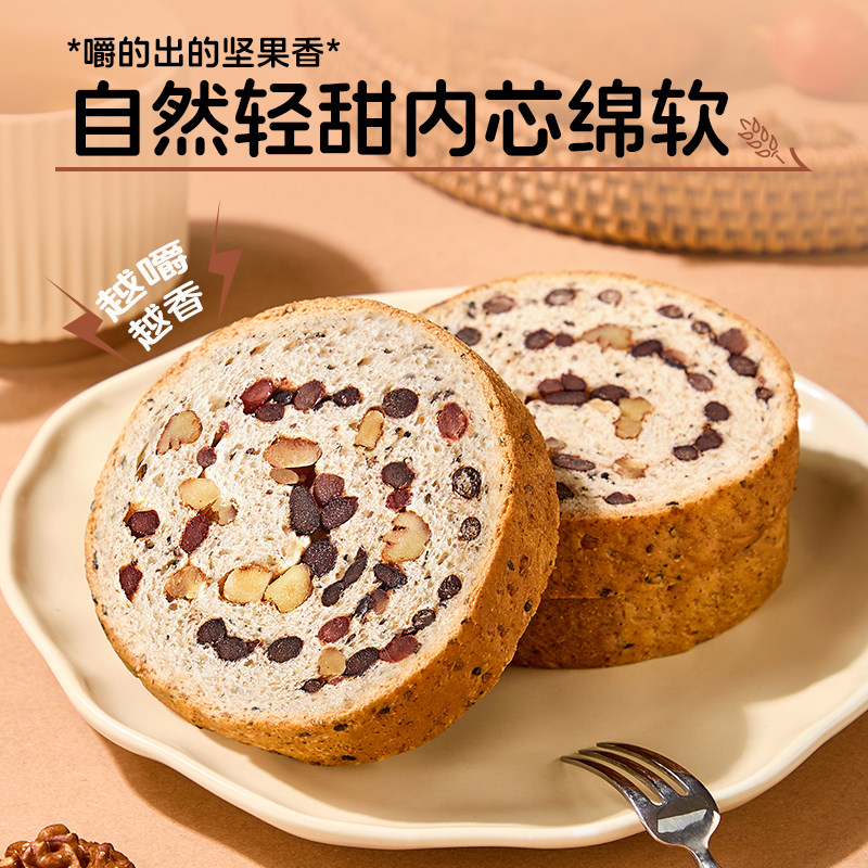 健身代餐车轮面包全麦吐司果仁早餐黑豆核桃坚果零食0蔗糖