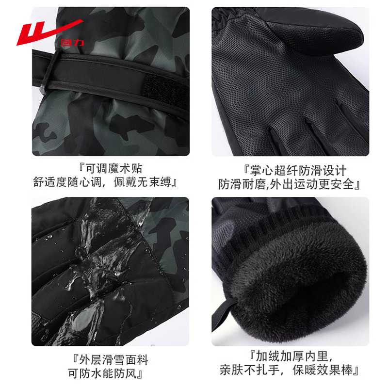 回力防寒手套男冬季保暖防风滑雪加绒加厚触屏女士骑行防水骑车