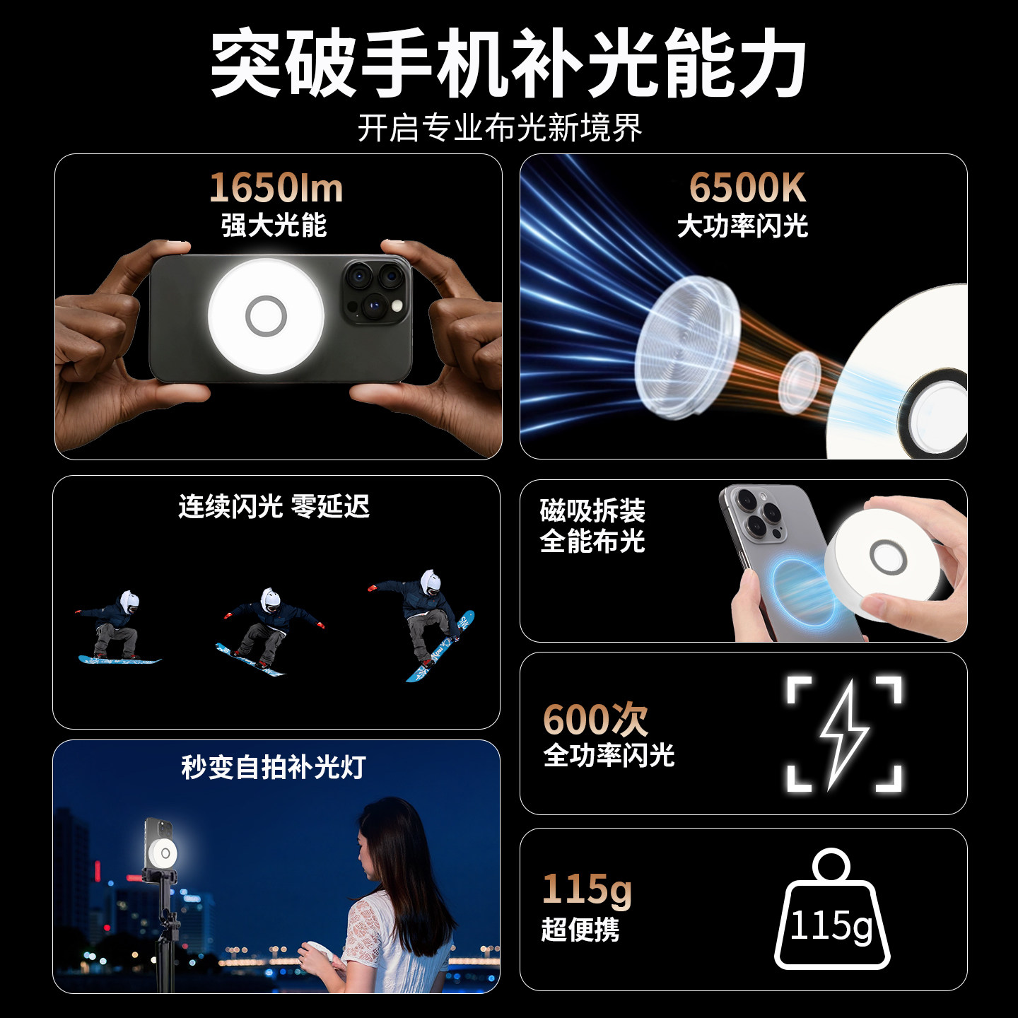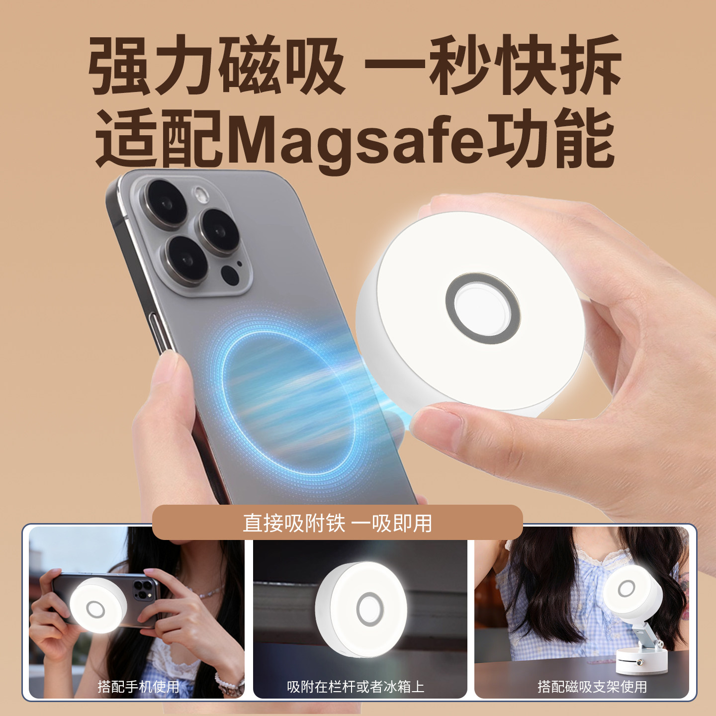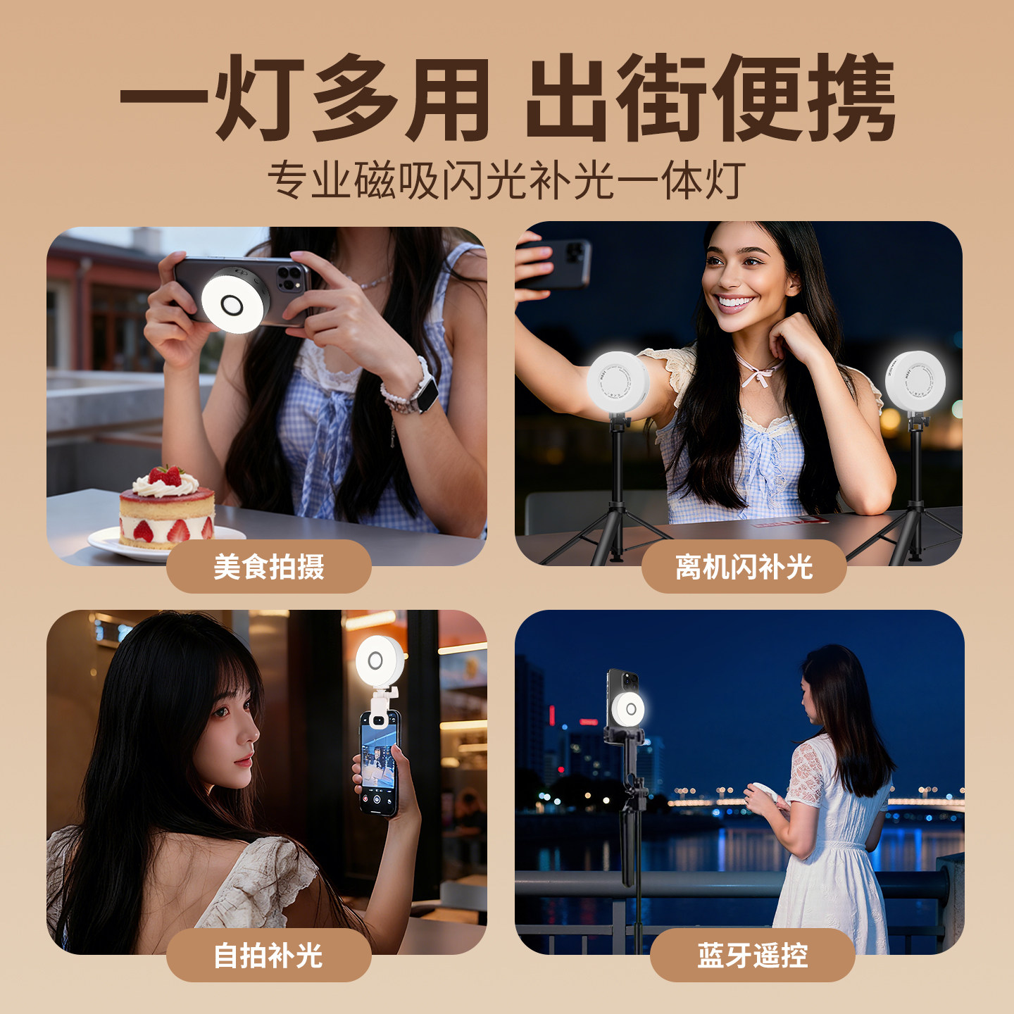 手机磁吸闪光灯自拍神器小型美颜瘦脸嫩肤柔光灯网红抖音主播直播室内外探店夜晚拍照补光灯磁吸蓝牙打光灯