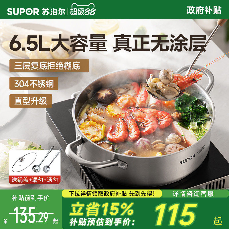 苏泊尔清汤锅/鸳鸯火锅锅具家用304不锈钢电磁炉专用涮煮锅火锅盆
