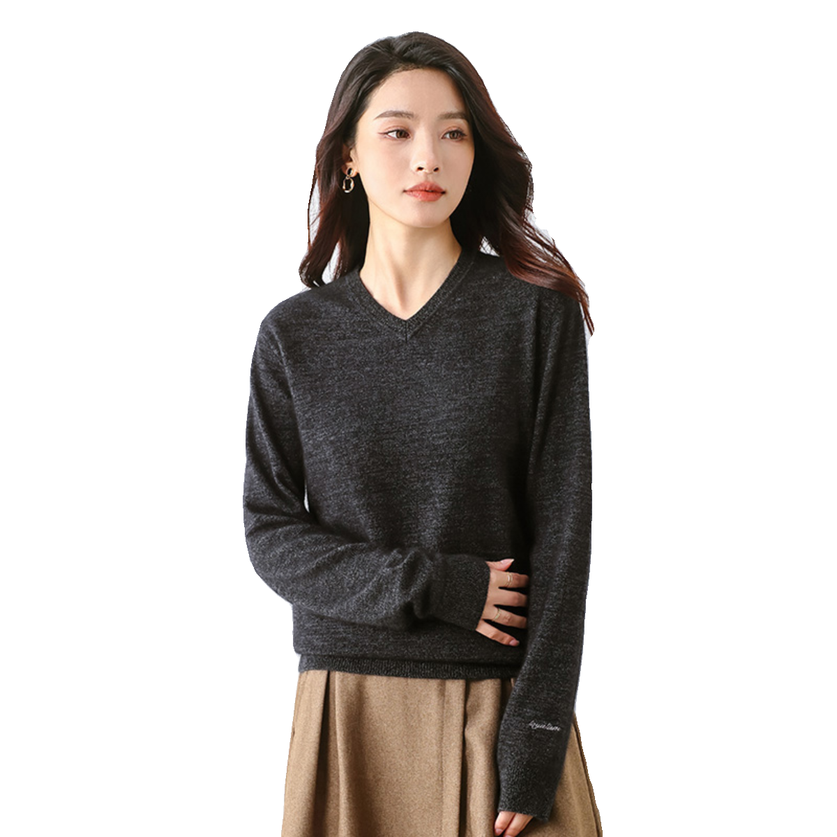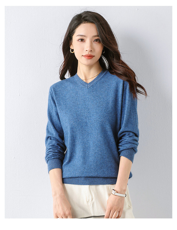2024年春季【含羊毛及貂绒】新款百搭时尚舒适V领套头长袖毛衫