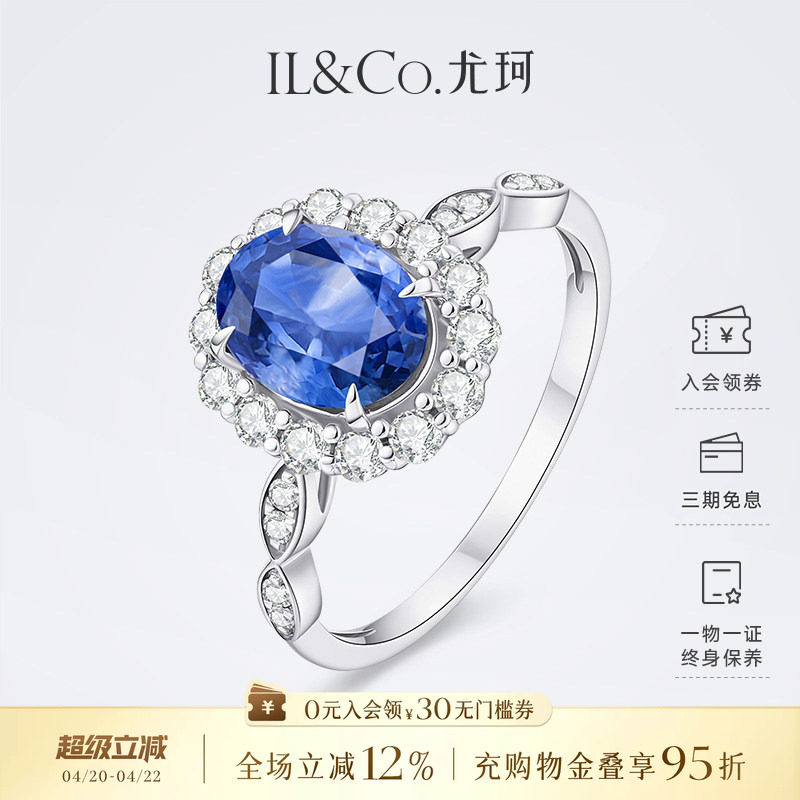 ILCO尤珂「奢丽之花」18k金天然蓝宝石戒指真钻镶嵌红宝石女戒指