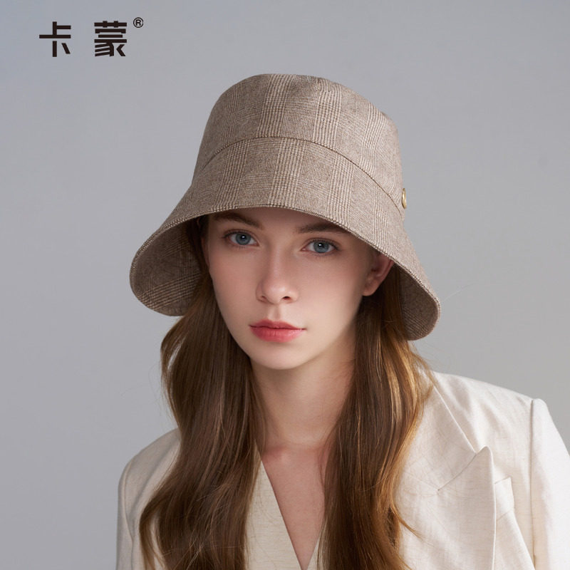 卡蒙秋冬羊毛渔夫帽女士2025新款大头围帽子超好看格纹高级感盆帽