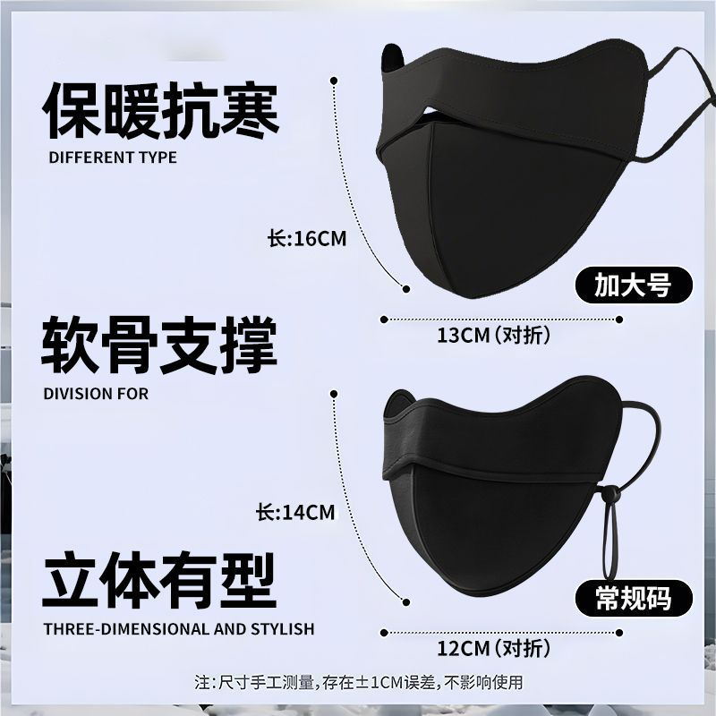 口罩冬季保暖防风女士无痕显瘦美拉高颜值加绒立体防护黑色德绒