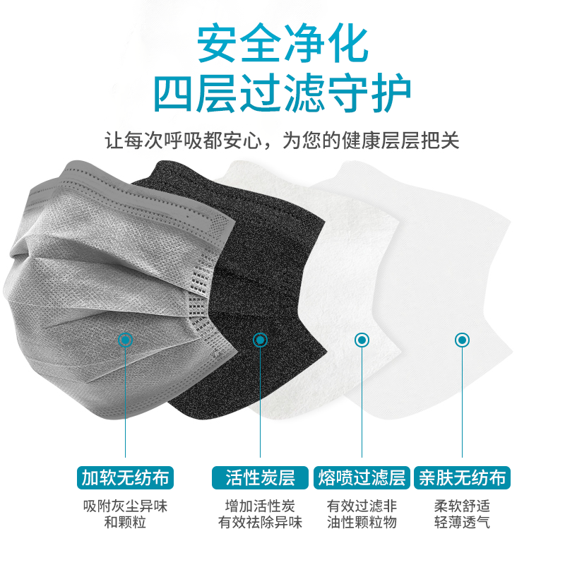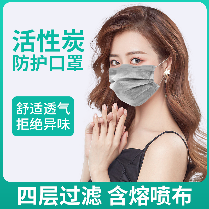 活性炭口罩一次性四层加厚黑灰色透气粉尘专用甲醛喷漆实验室工业