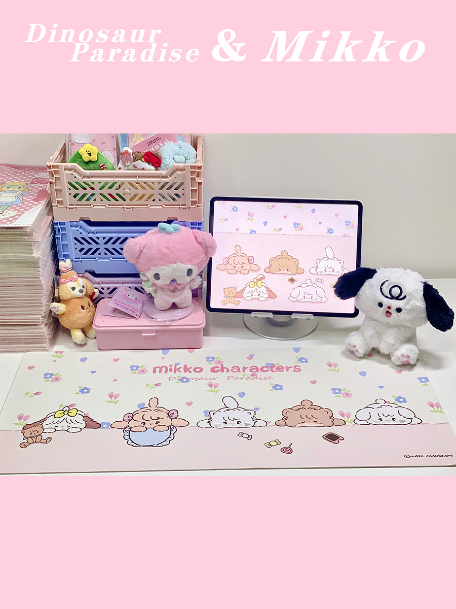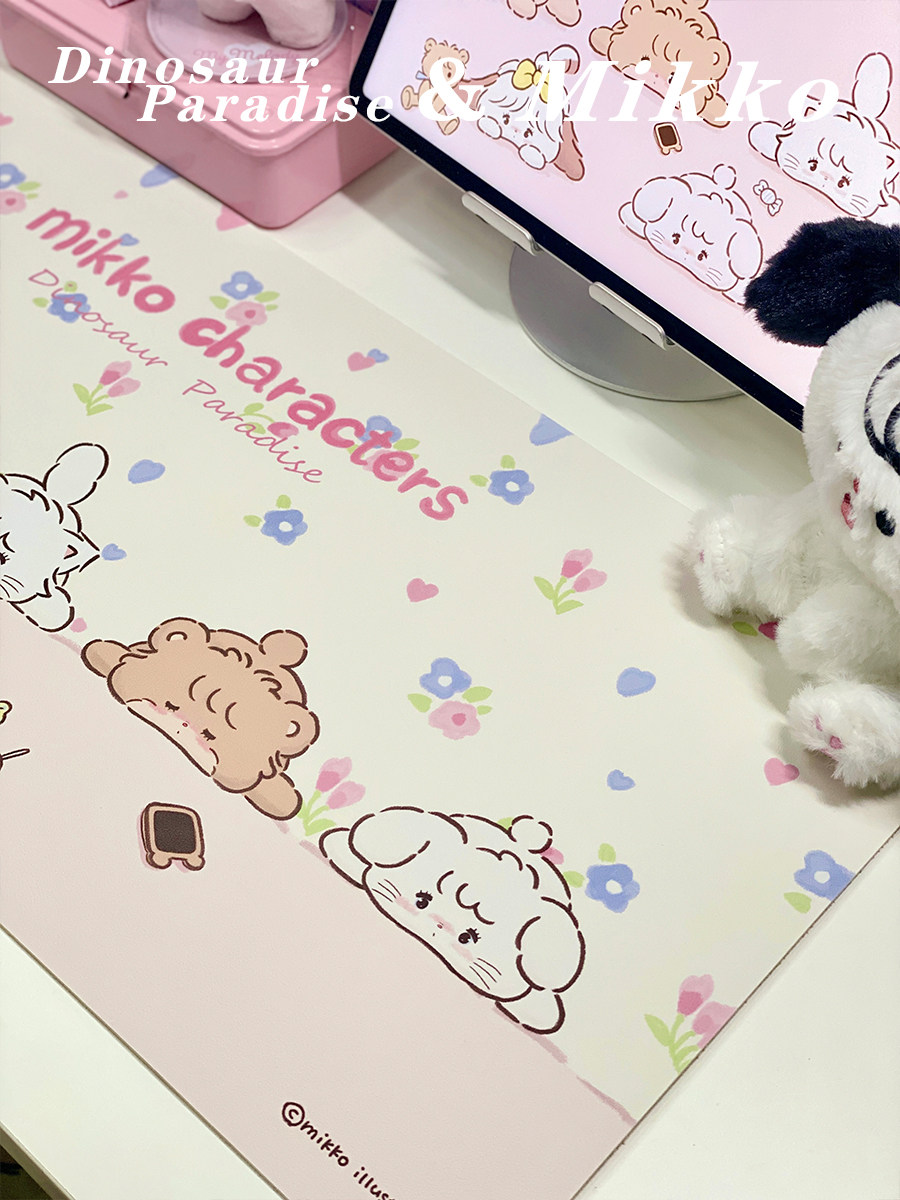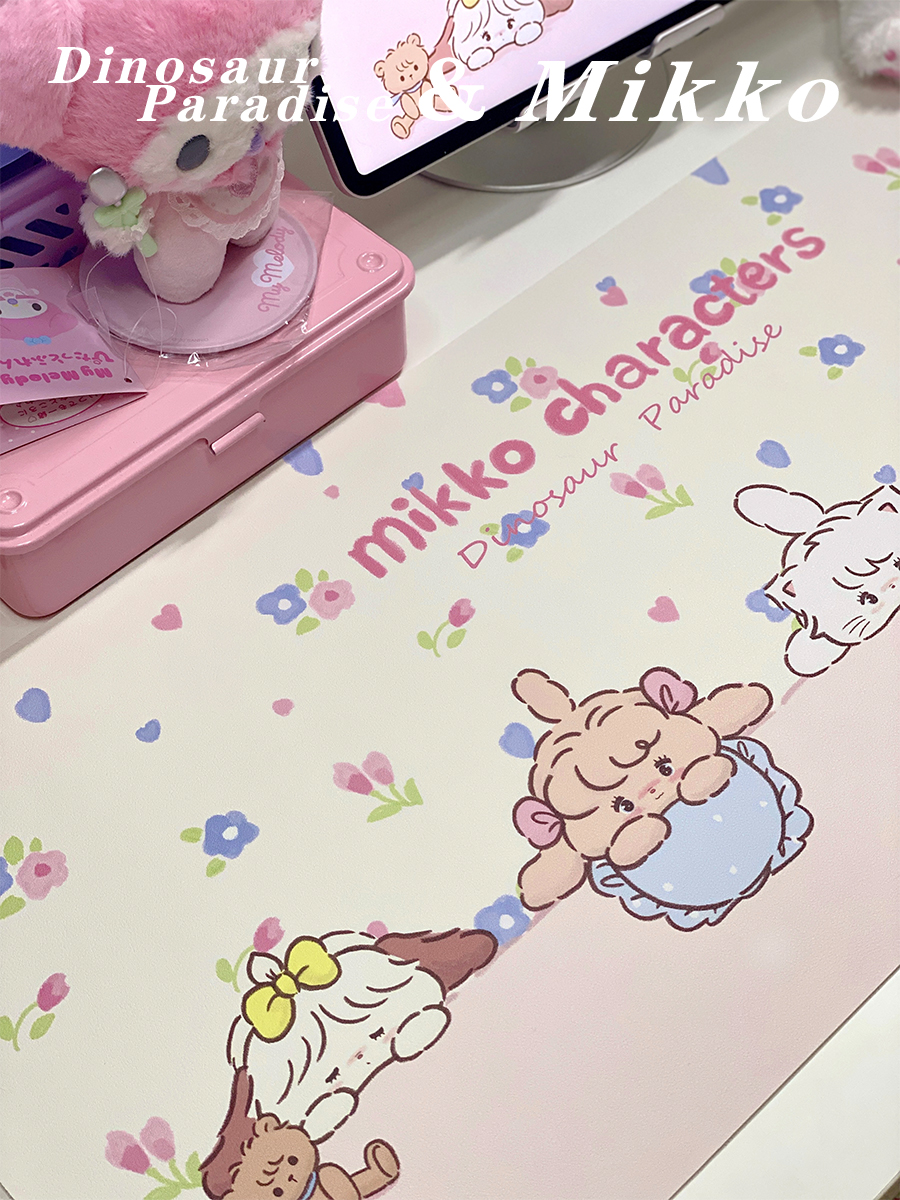 正版MIKKO联名少女心粉色桌垫防水防油鼠标垫防滑桌垫小恐龙乐园