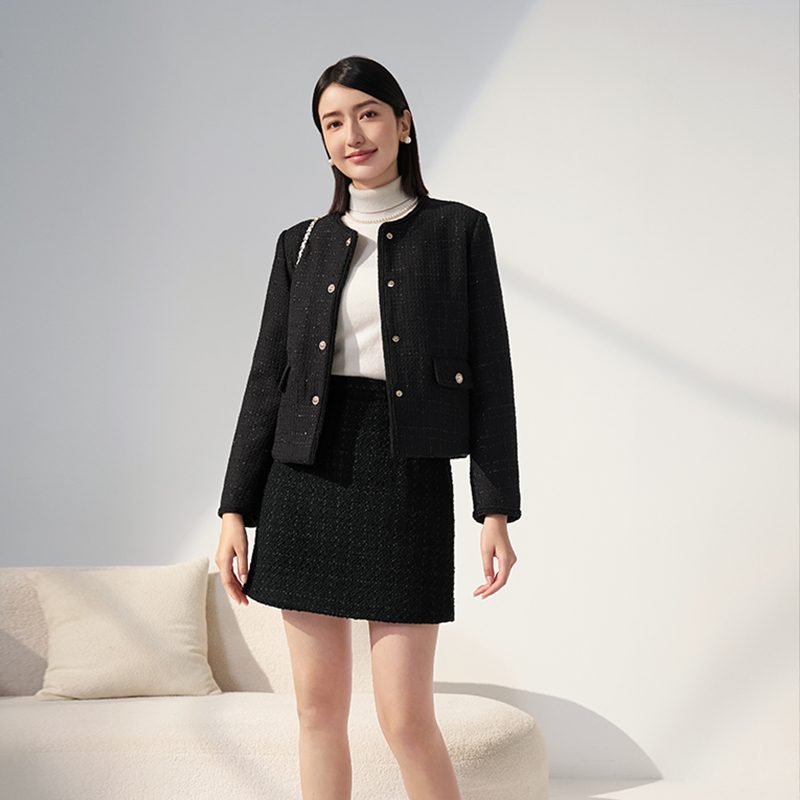 波司登高端秋冬时尚短款秋季圆领小香风优雅高级鹅绒女士羽绒服