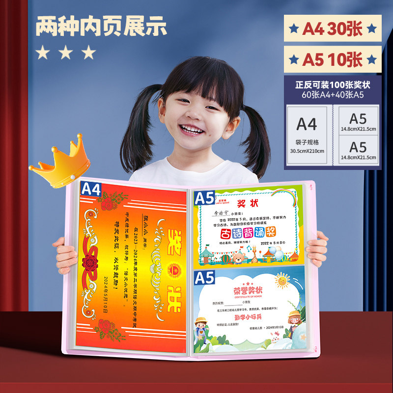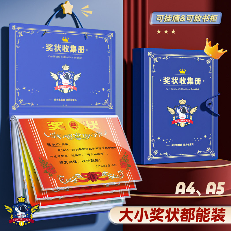 a4奖状收集册男孩女孩荣誉证书a5画册收纳2026年新款小学生儿童相册本收藏袋放装作品的收纳盒册子可挂墙展示