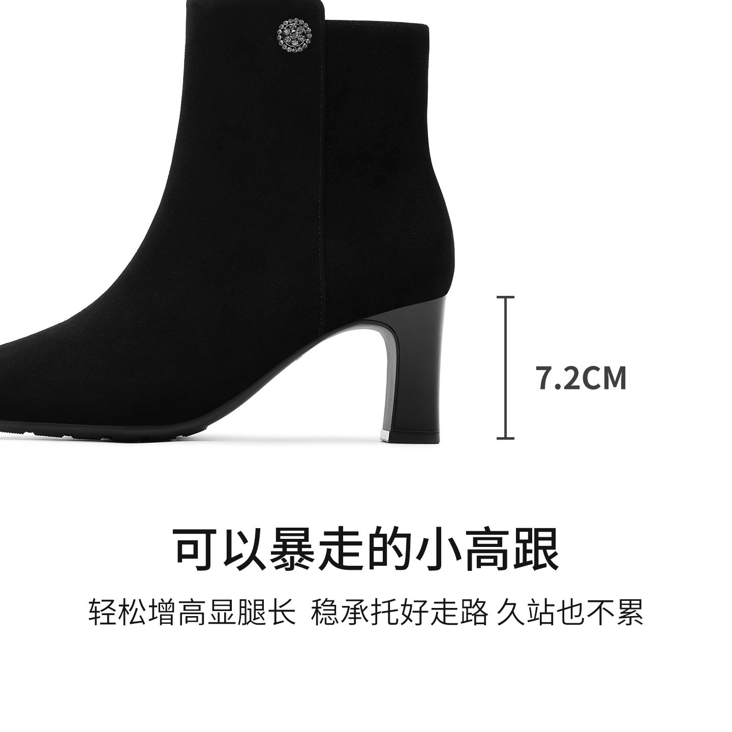 棕色靴子!小个子内增高7CM法式方头靴2025冬新款绒面粗跟短靴女