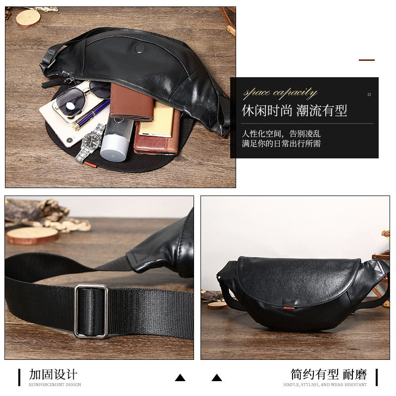 男士头层牛皮胸包 时尚百搭男包斜挎牛皮小包 真皮胸前包