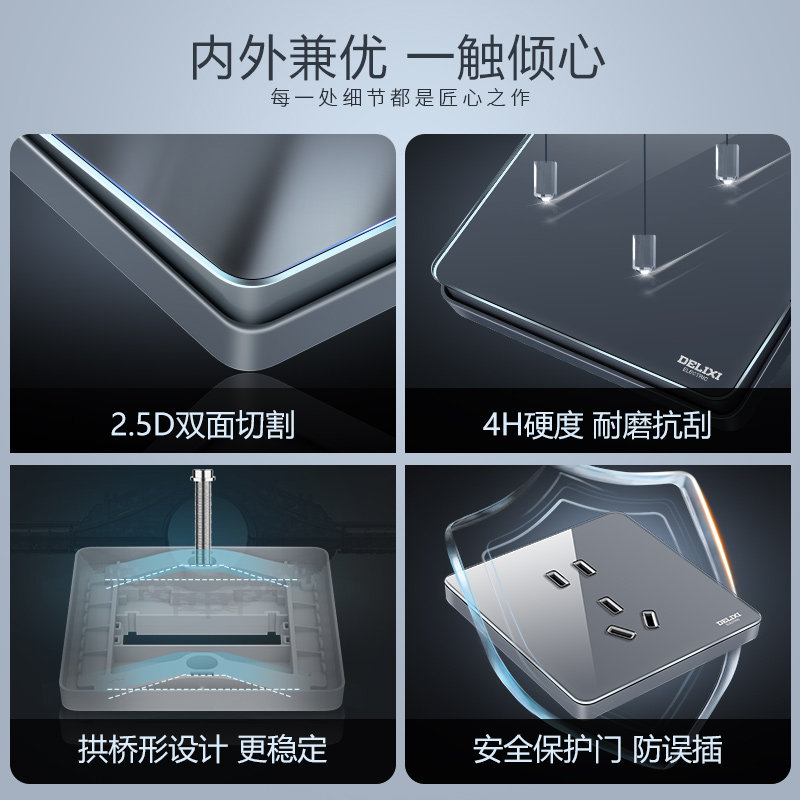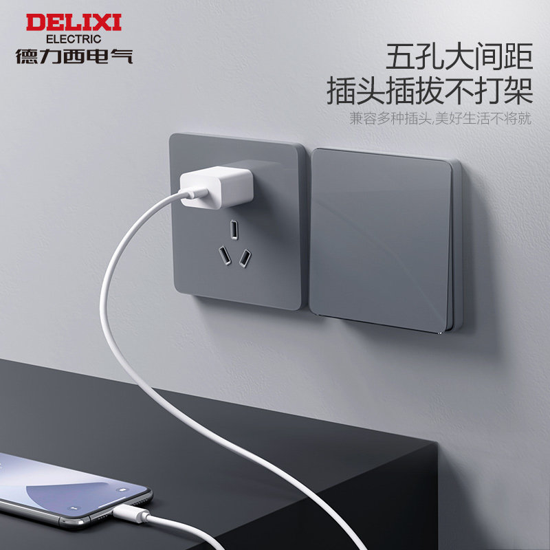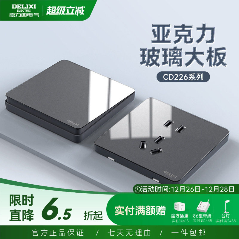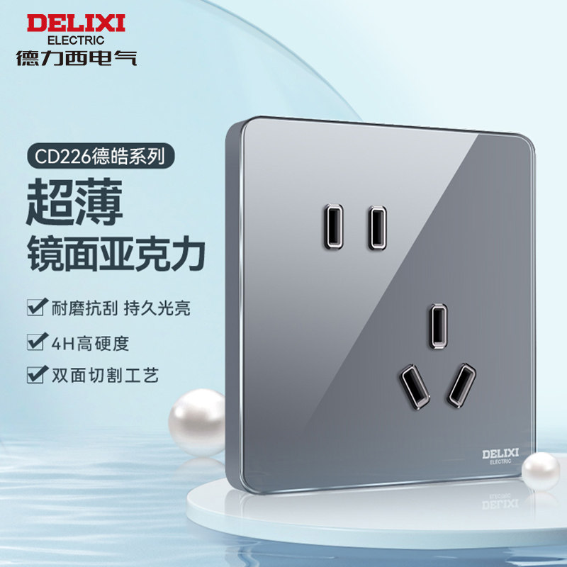 德力西官方旗舰店开关插座面板五孔墙壁插座空调16A亚克力226灰