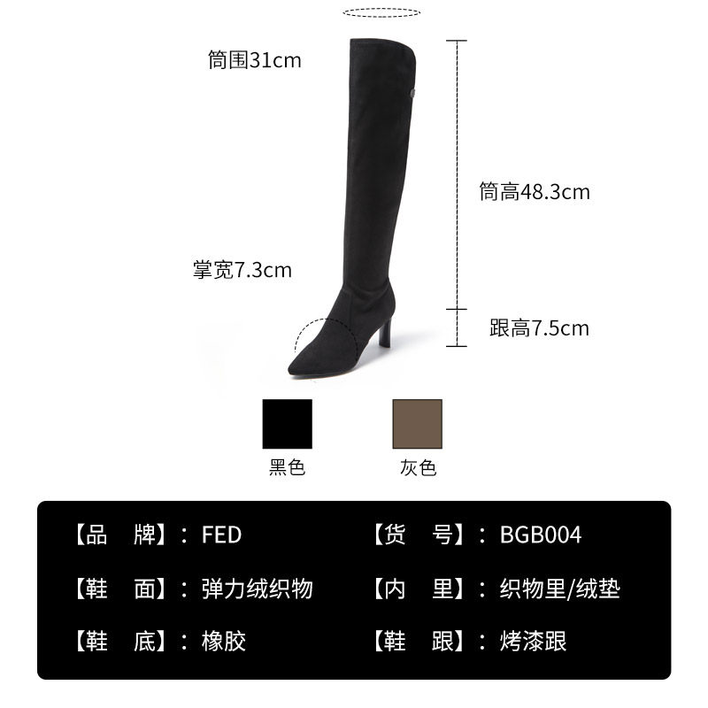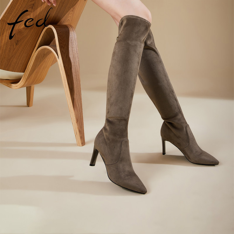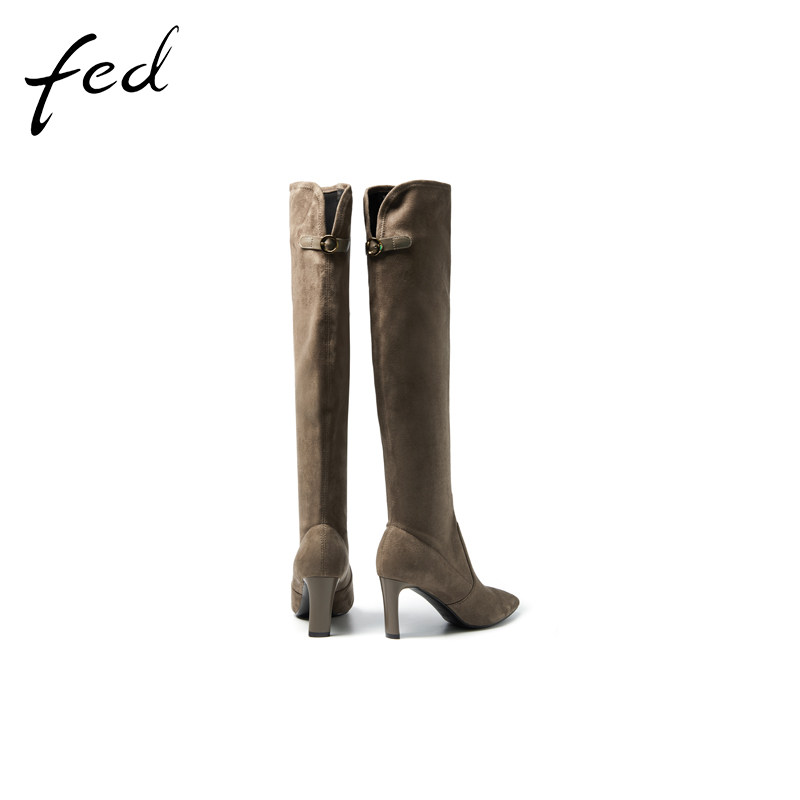 fed长靴冬季新款靴子尖头高跟过膝长筒靴弹力瘦瘦靴女1018-YAB004