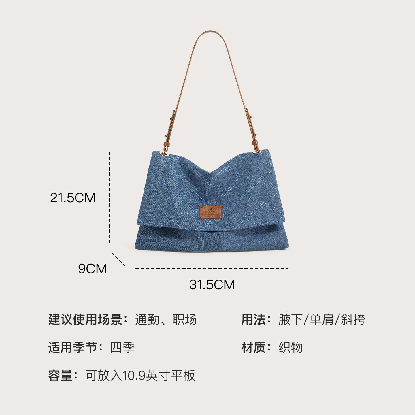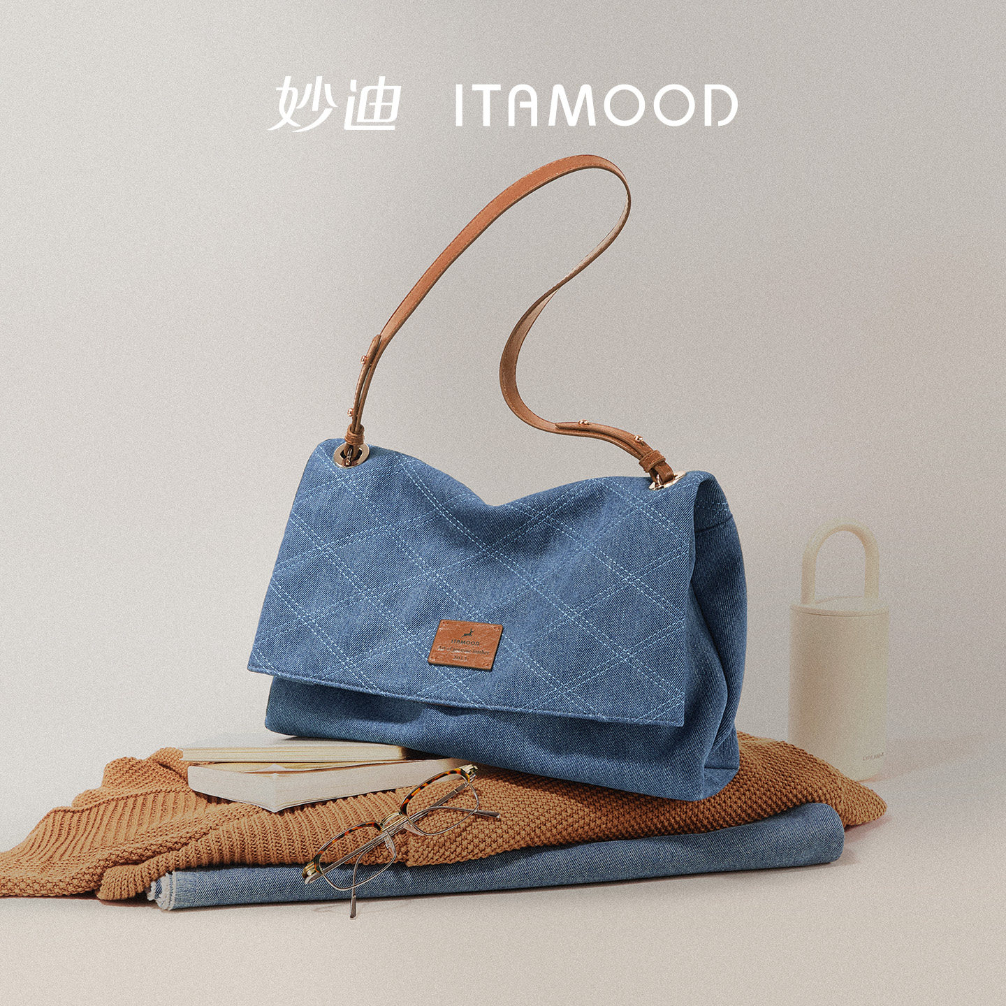 妙迪丹宁牛仔托特包春夏新款小众时尚慵懒感大容量通勤斜挎包包女