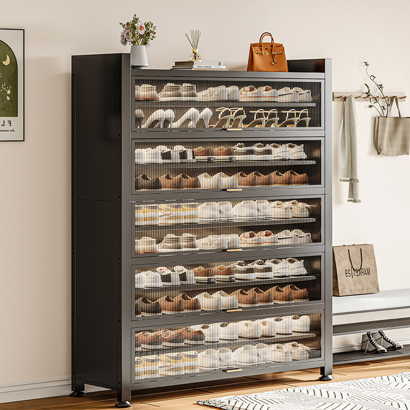 鞋柜钢制家用门口靠墙一体多层储物柜室内大容量防尘鞋架收纳鞋子