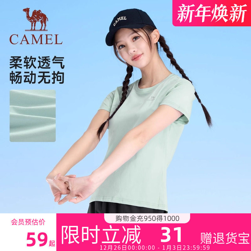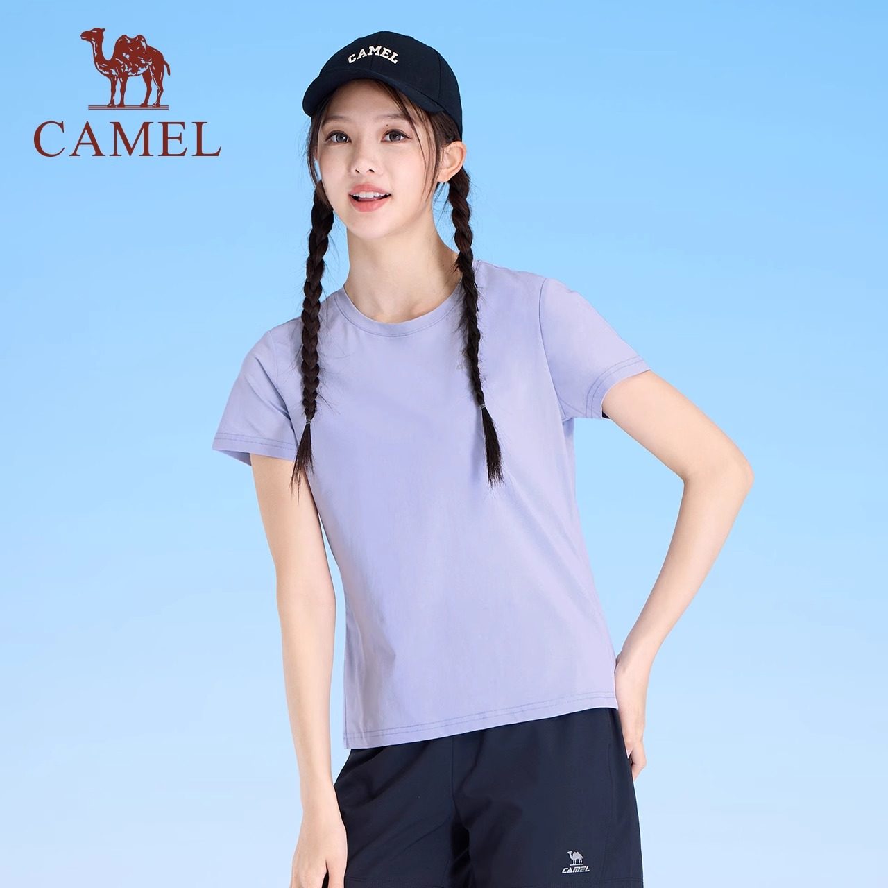 骆驼运动速干T恤女2025夏季多巴胺短袖透气户外健身瑜伽半袖上衣