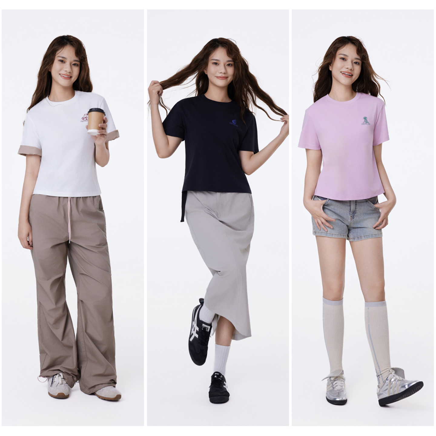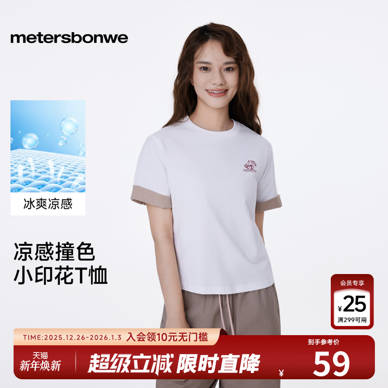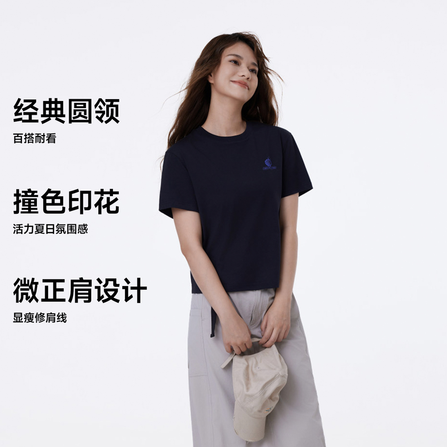 美特斯邦威t恤女装2025夏季新款潮流撞色小印花圆领舒适短袖上衣