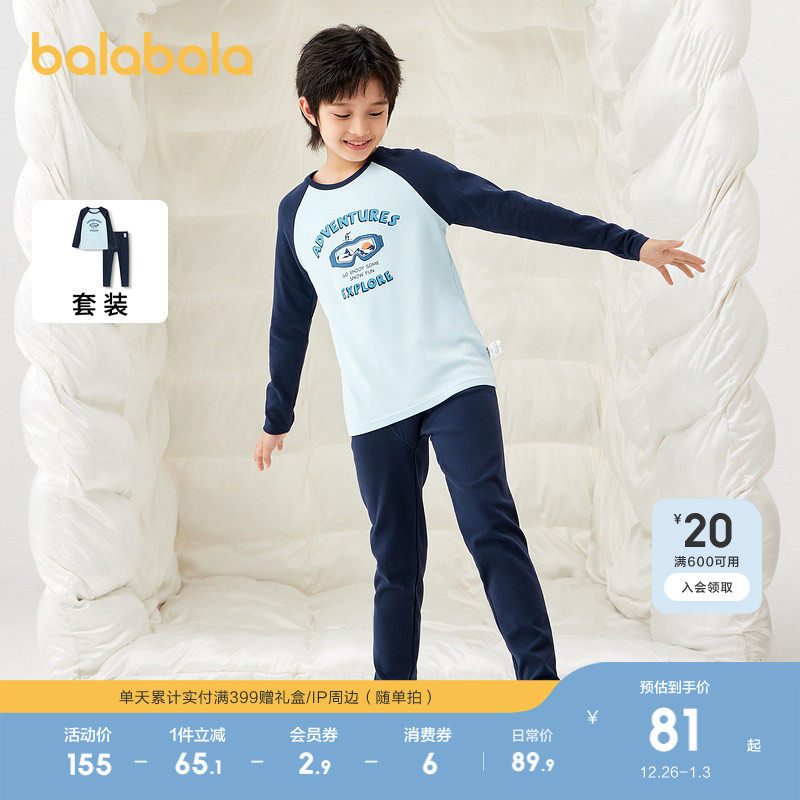 巴拉巴拉男童秋衣秋裤套装秋冬保暖内衣大童打底睡衣拼色舒适亲肤