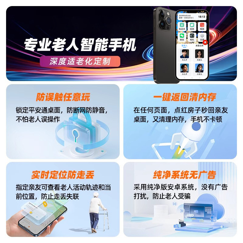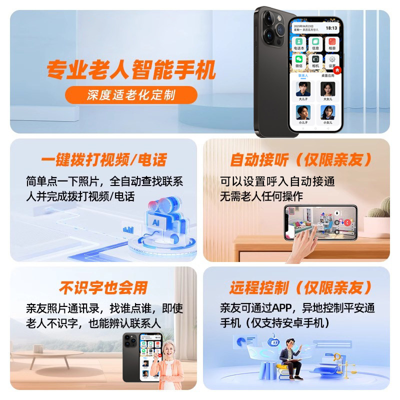 新款平安省心通老人智能手机适合不识字老年人专用的一键呼视频通电话自动接听全网通大屏大字大声音定位功能