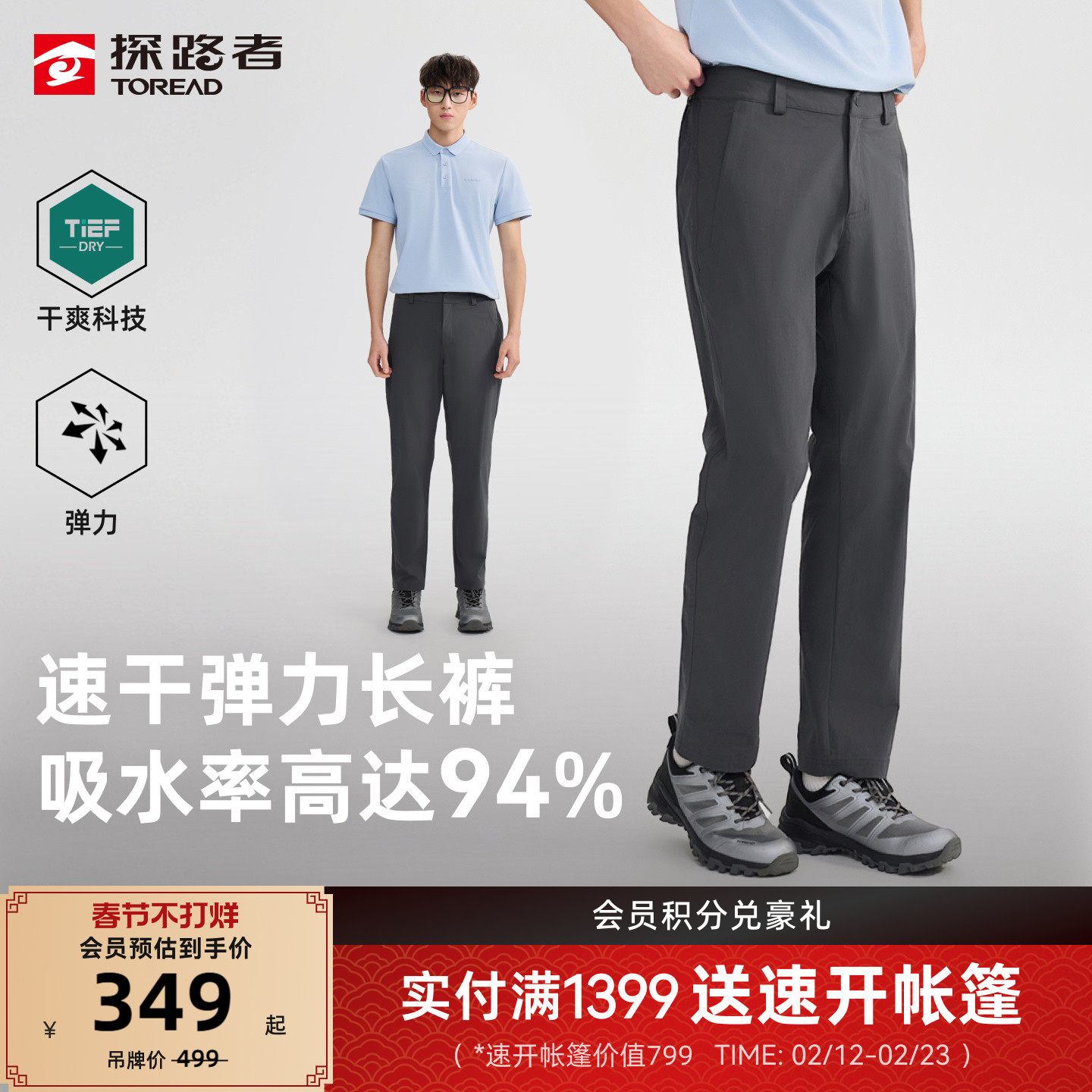 探路者功能裤男户外徒步登山吸湿速干高弹舒适轻盈透气运动长裤女