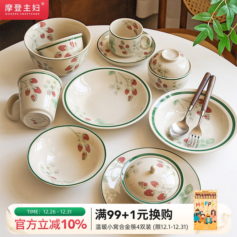 摩登主妇釉下彩漂亮餐具套装碗碟盘子家用2026新款法式餐盘饭碗具