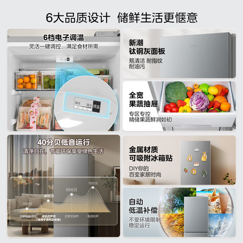 美的191租房宿舍节能省电低噪冷冻冷藏小型家用两门一级能效冰箱