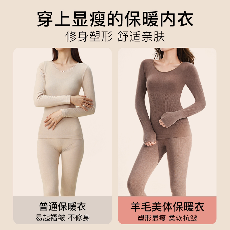 保暖内衣女羊毛发热秋衣秋裤无痕显瘦打底秋冬季美体套装内搭上衣