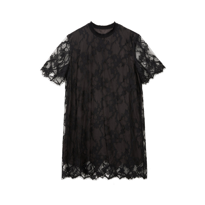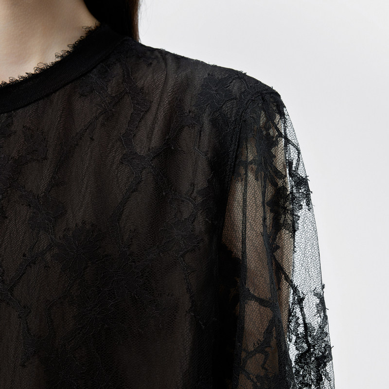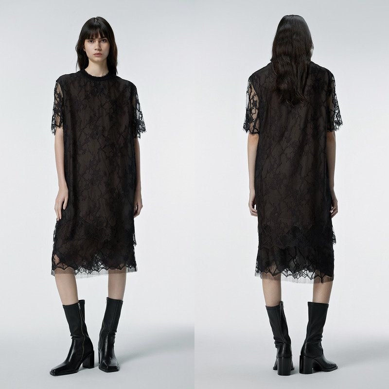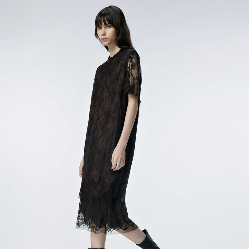 【断码清仓】JNBY/江南布衣春秋款连衣裙网纱镂空复古优雅女圆领