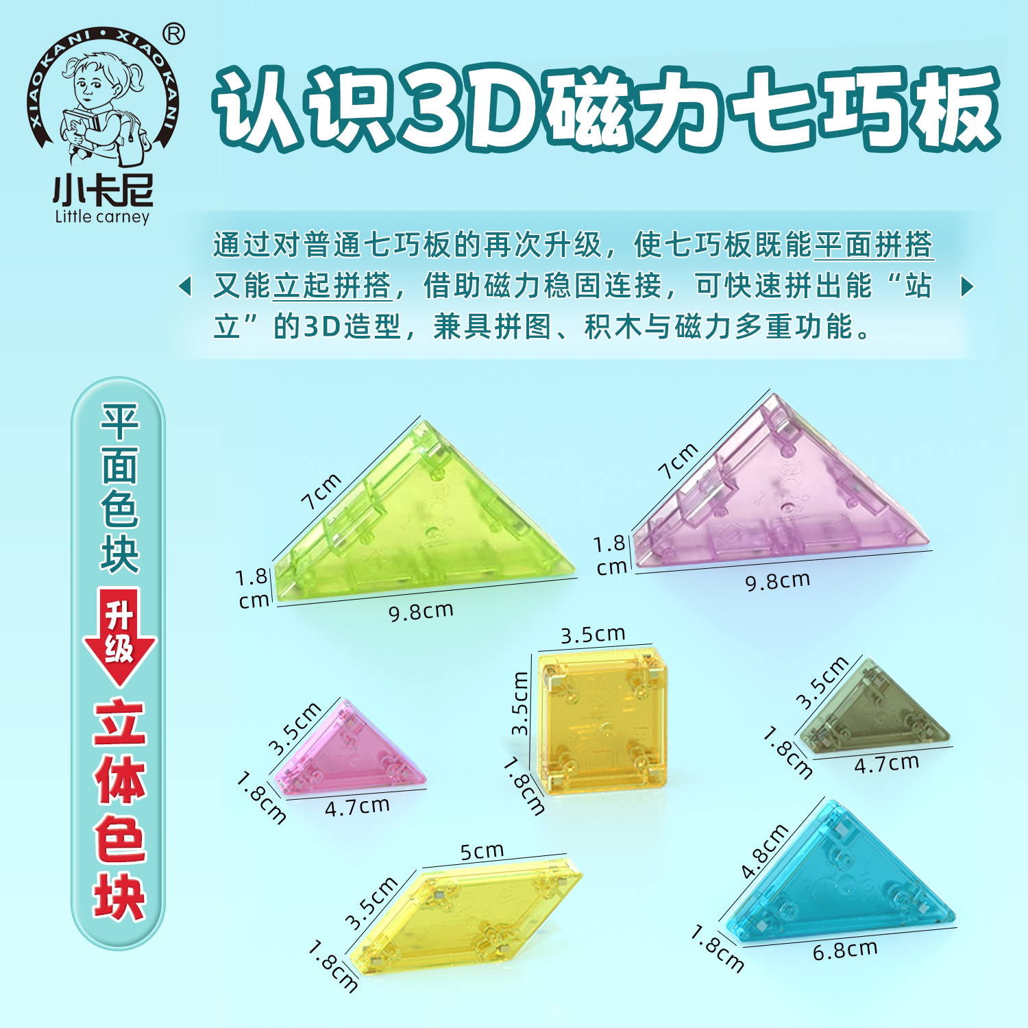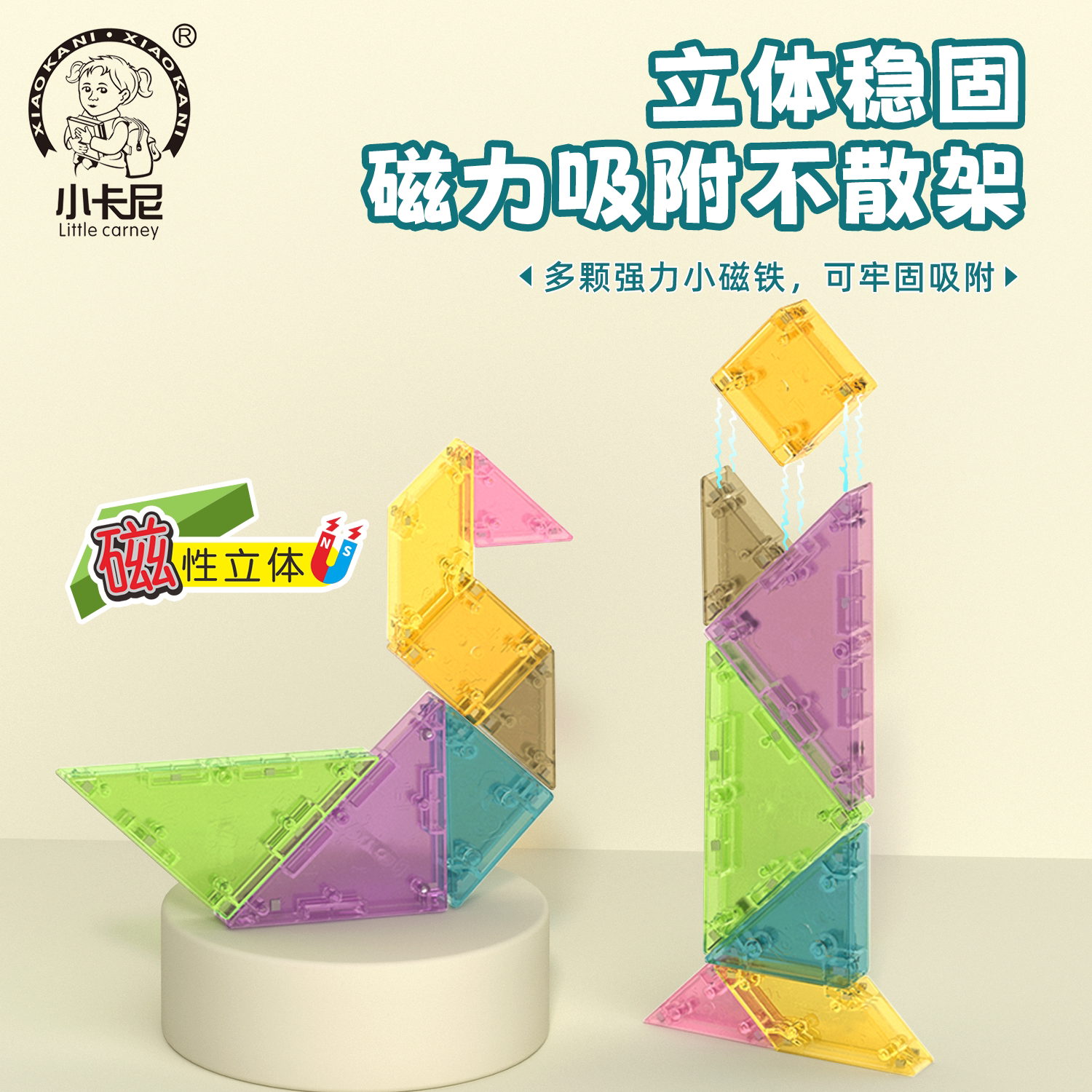 磁力七巧板3D立体模型磁性拼图拼板益智玩具小学生一年级专用教具