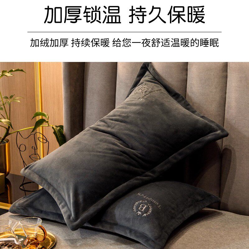 加厚牛奶绒枕套一对装秋冬季家用珊瑚绒枕头套成人枕芯内胆罩单个