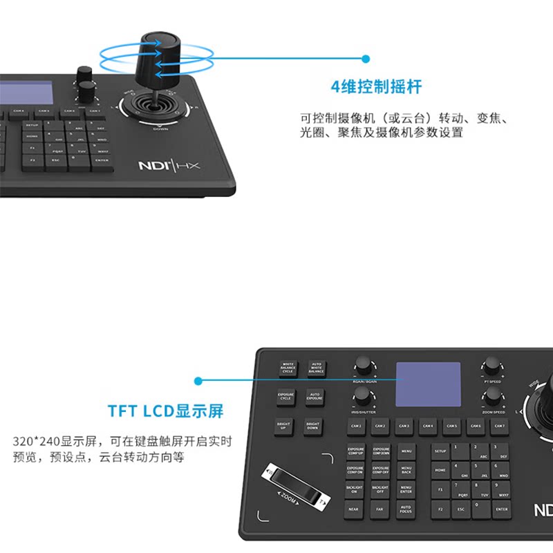戴浦视频会议摄像头控制键盘LCD液晶屏/四维云台摇杆远程会议带NDI协议兼容摄像机控制设备DP-CK105N