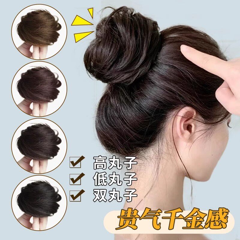 低扎丸子头假发鸡毛头抓夹盘发发包慵懒感造型头饰自然蓬松后脑勺