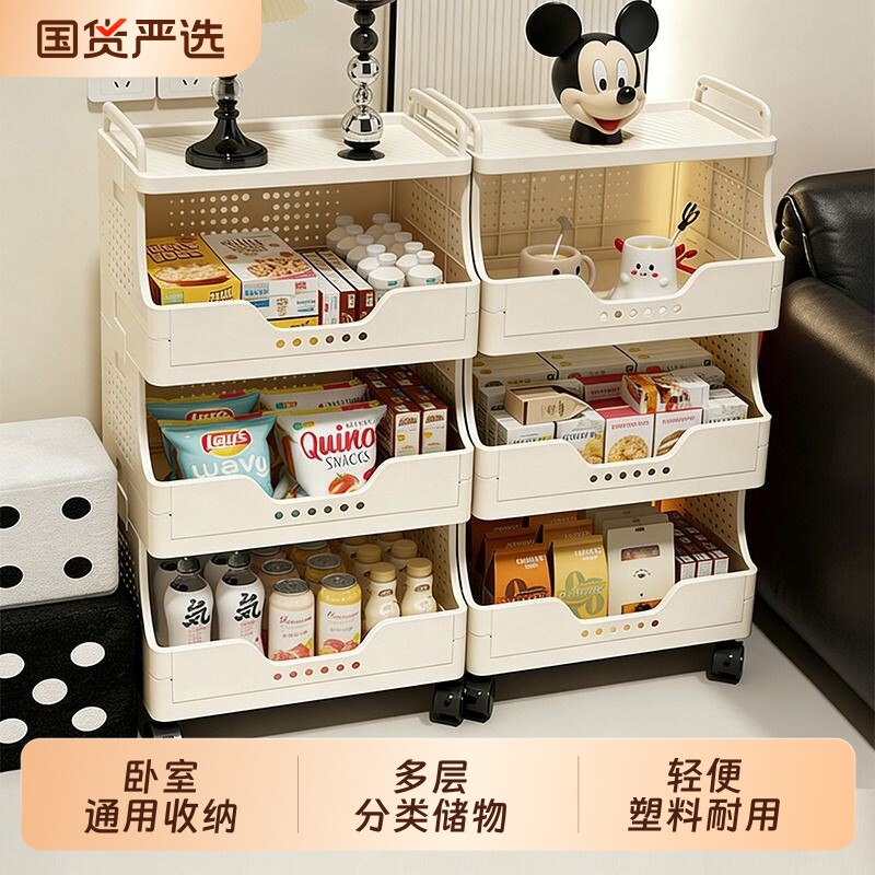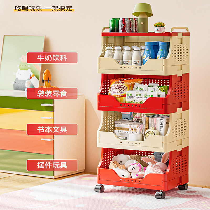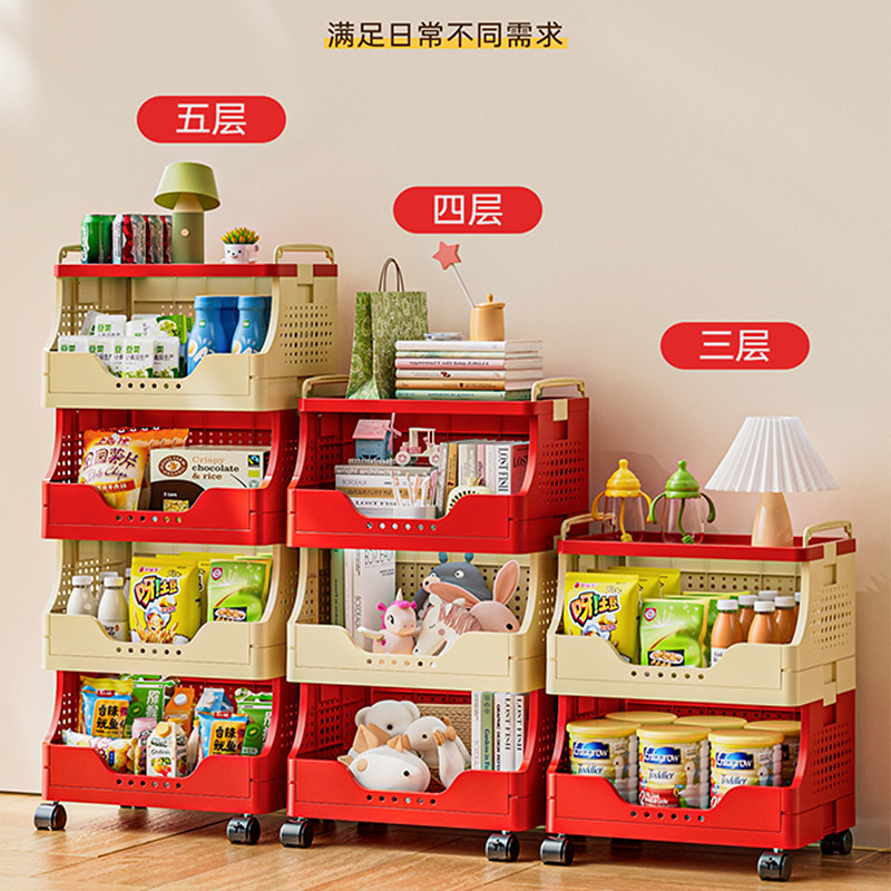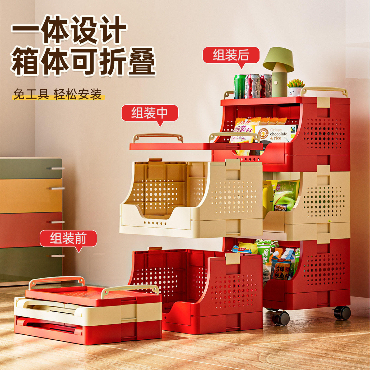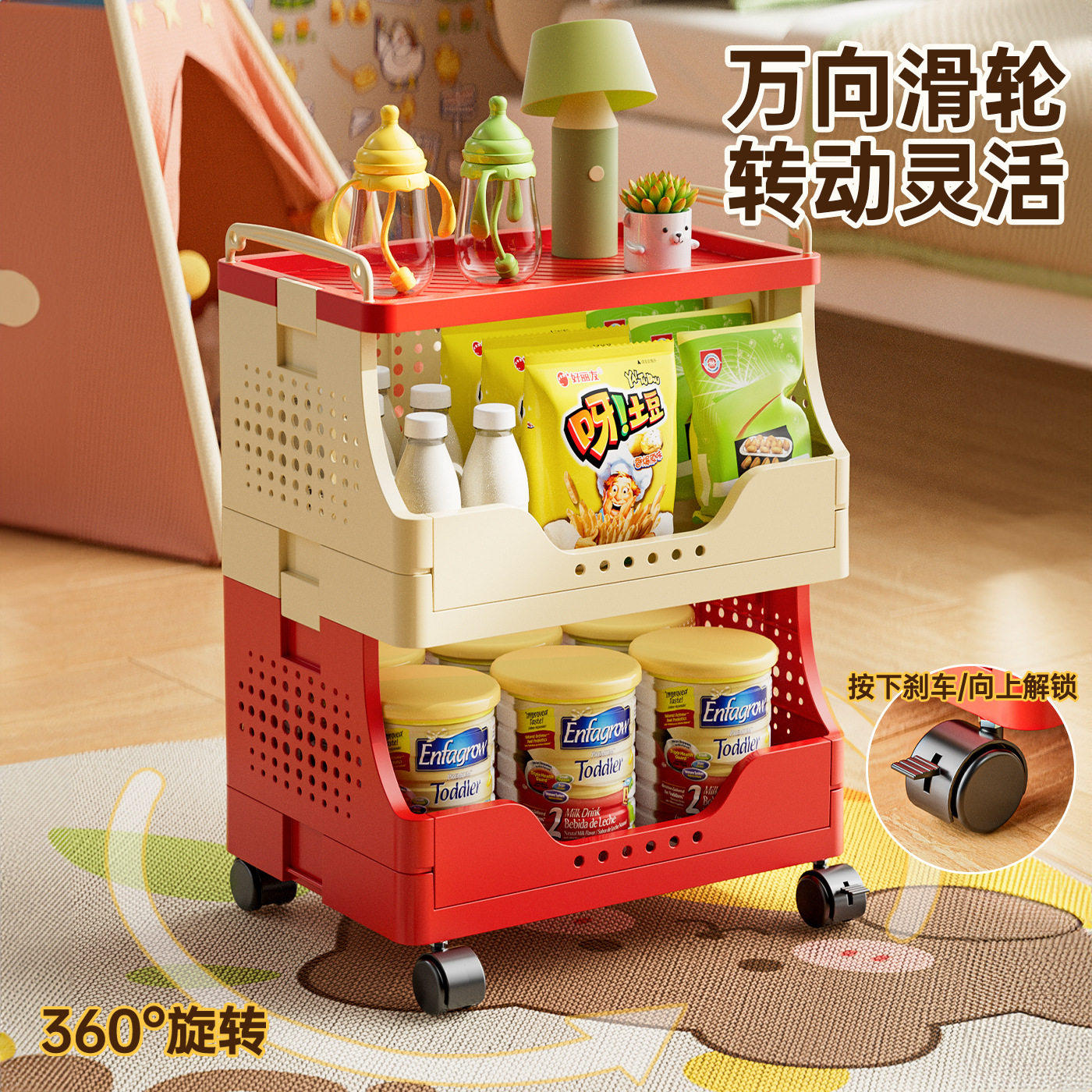 小推车置物架多层落地书架可移动零食玩具收纳架柜可折叠储物卧室