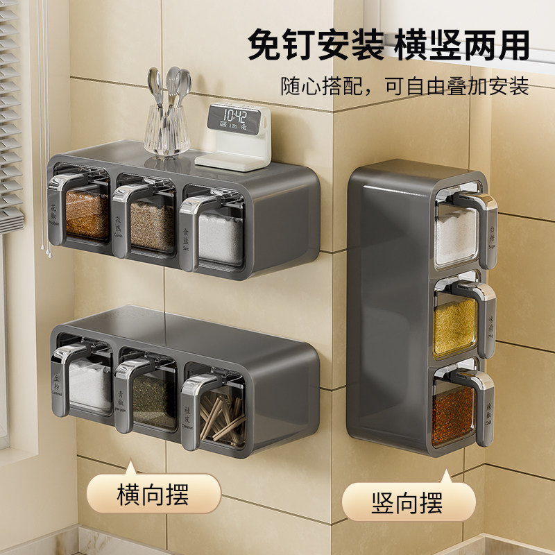 调料盒壁挂家用厨房调味料收纳盒墙挂调味瓶罐密封佐料盐罐调料罐