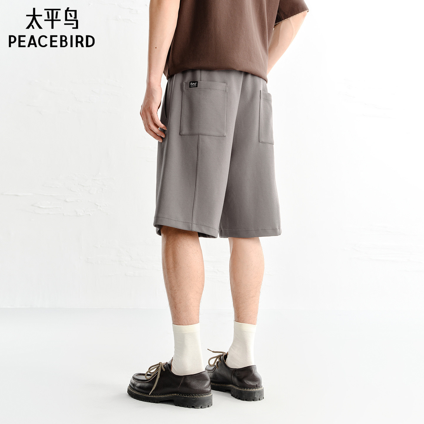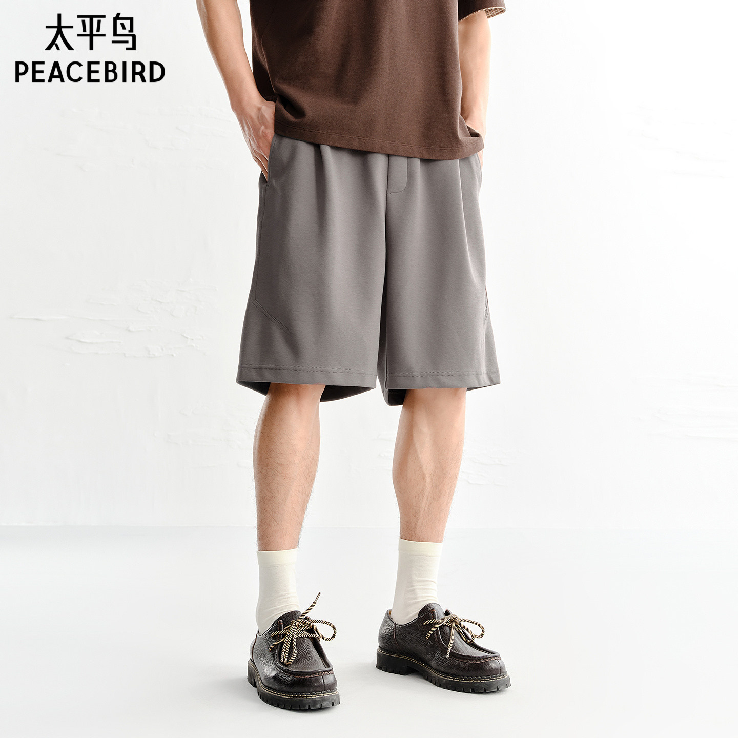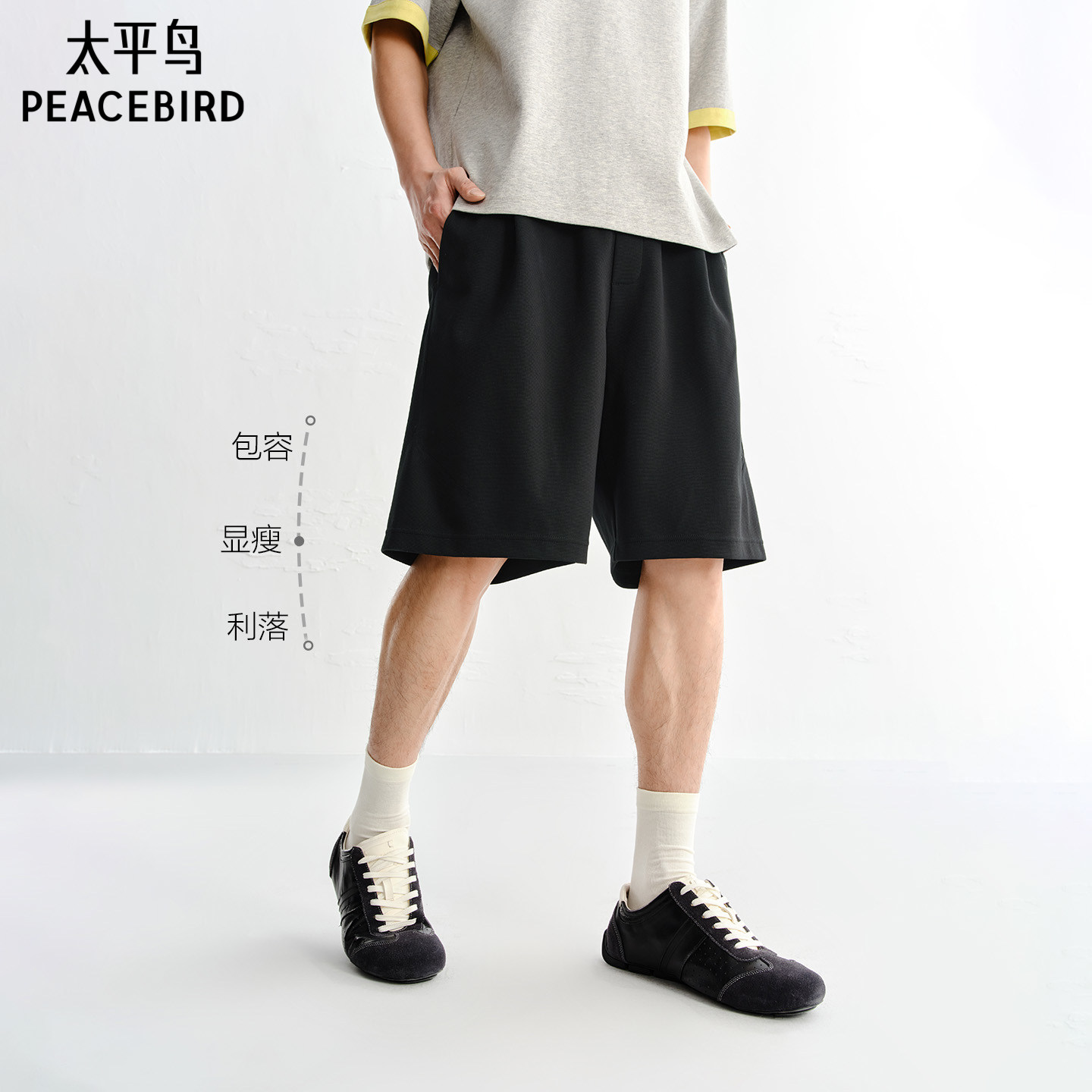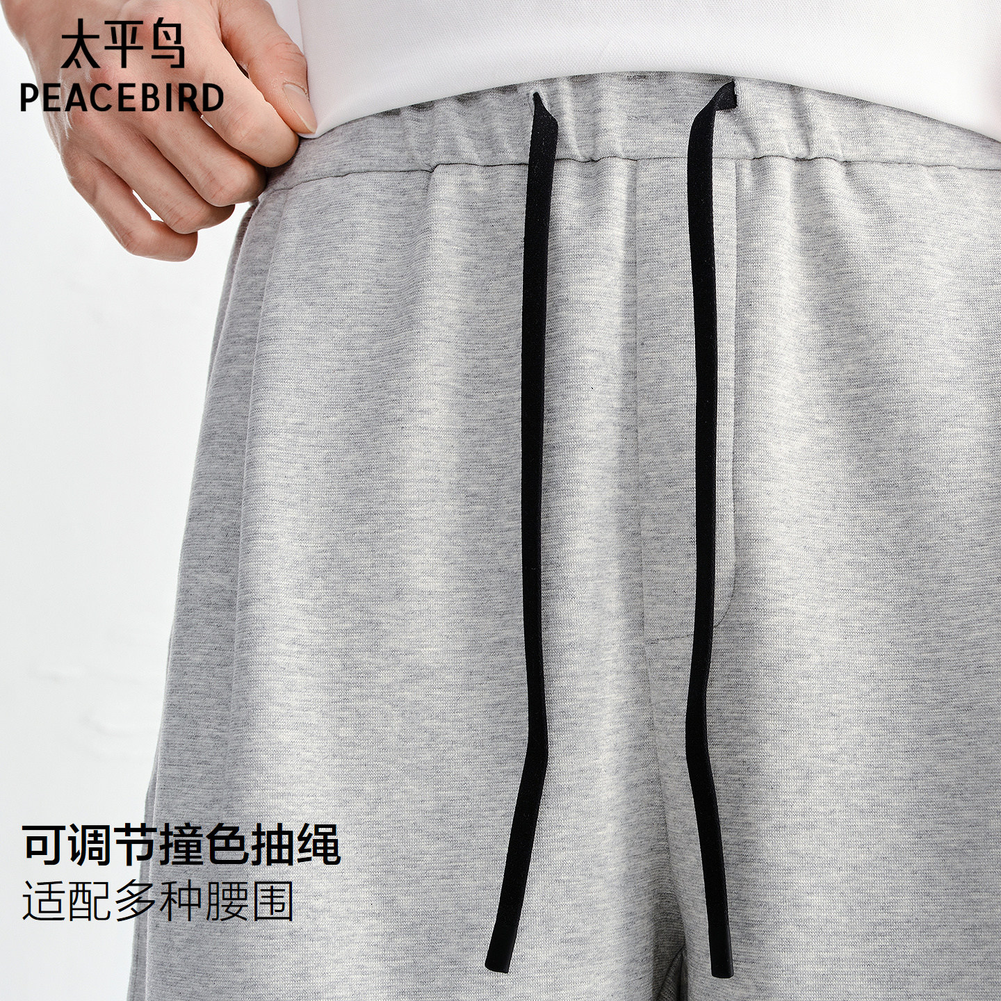 太平鸟男装休闲裤26夏季新款运动中裤宽松质感针织刺绣五分裤潮