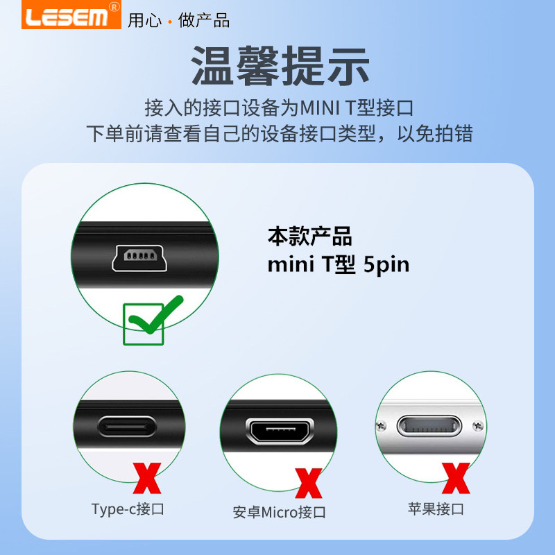 达而稳 Mini USB数据线充电线老式接口MP3移动硬盘数据线行车记录仪电源线T型口手机MP4数据线宽头梯形口连接