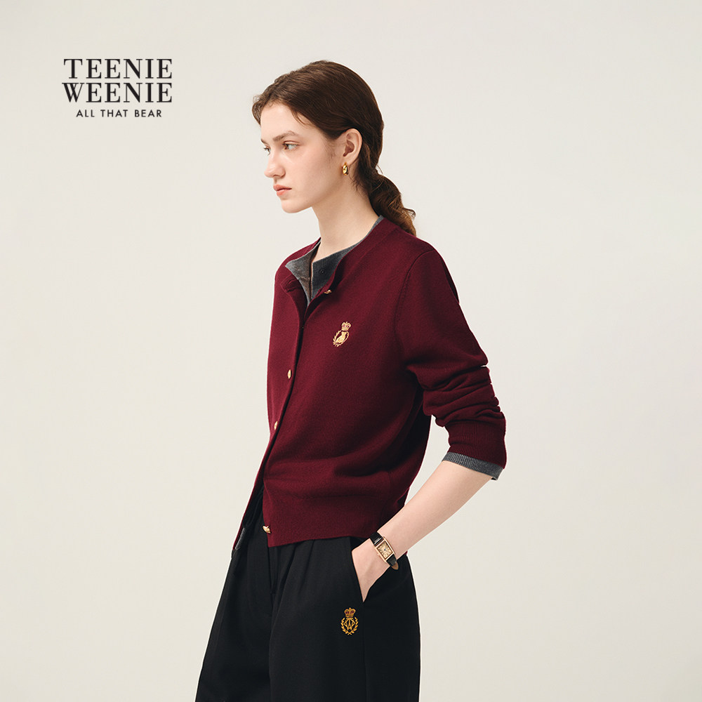【可机洗羊毛】TeenieWeenie小熊女四季针织2025冬新款假两件开衫