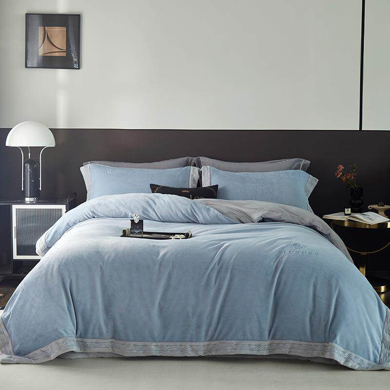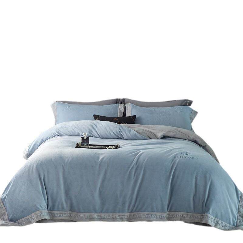 加厚全消光经典棉绒四件套字母刺绣保暖被套冬季床品蓝紫粉色