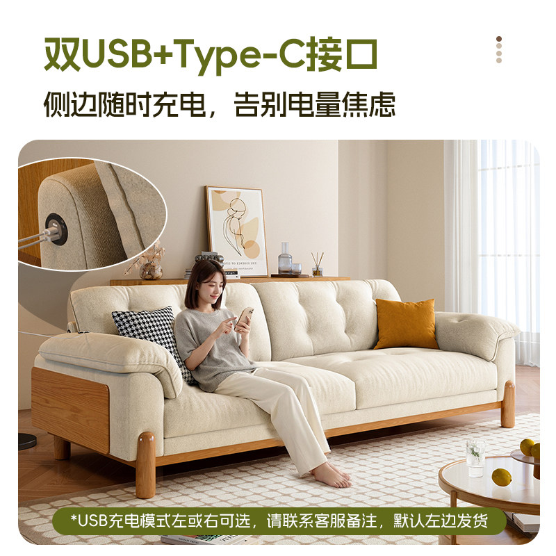 现代简约原木风实木云朵沙发日式小户型客厅奶油风布艺沙发白蜡木