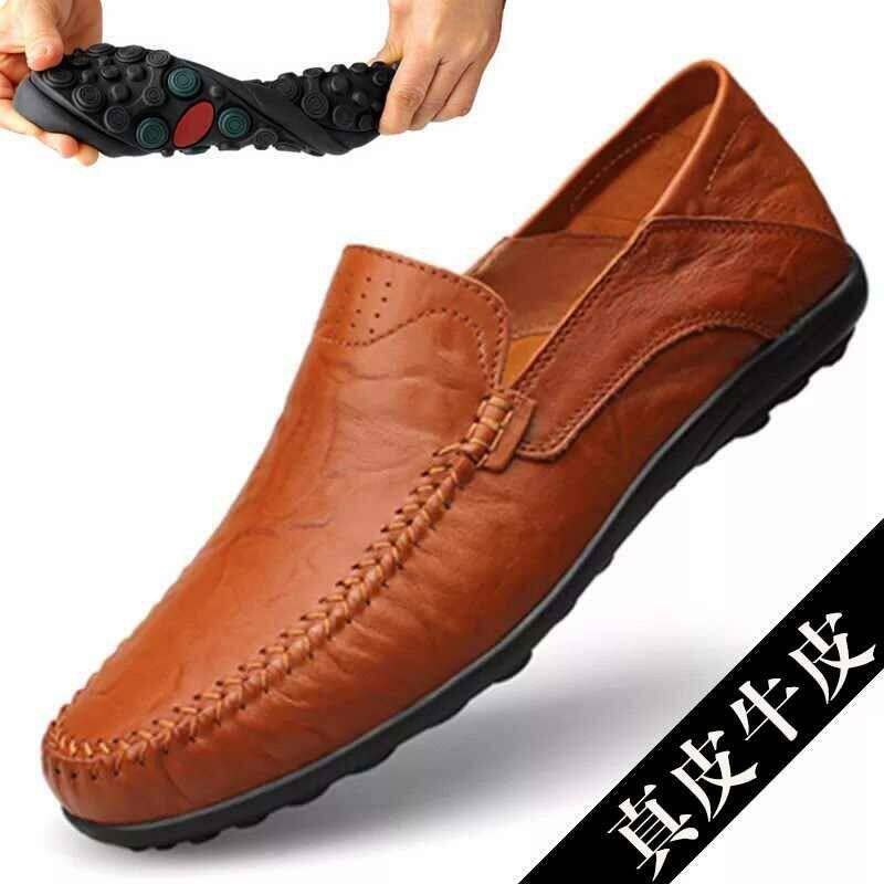 豆豆鞋男士春夏季潮流一脚蹬懒人皮鞋圆头真皮软底驾车鞋时尚男鞋