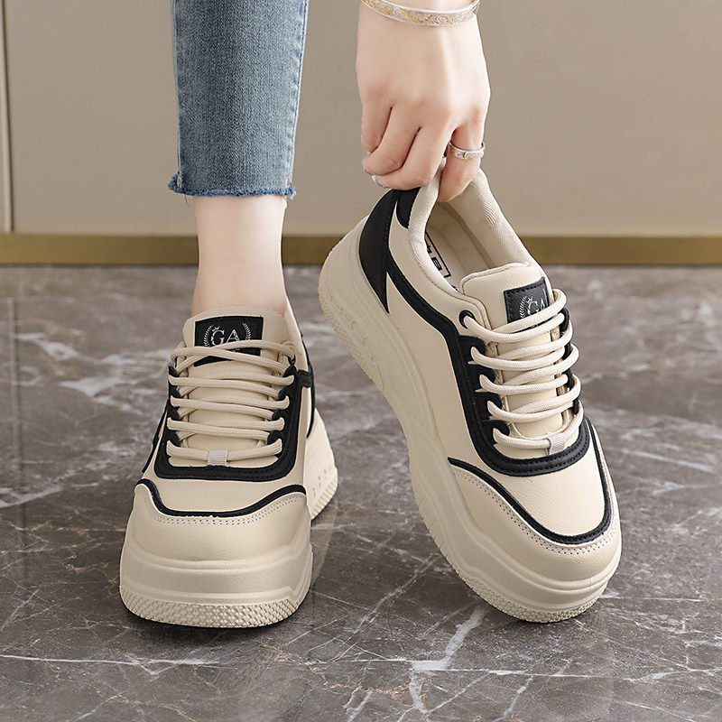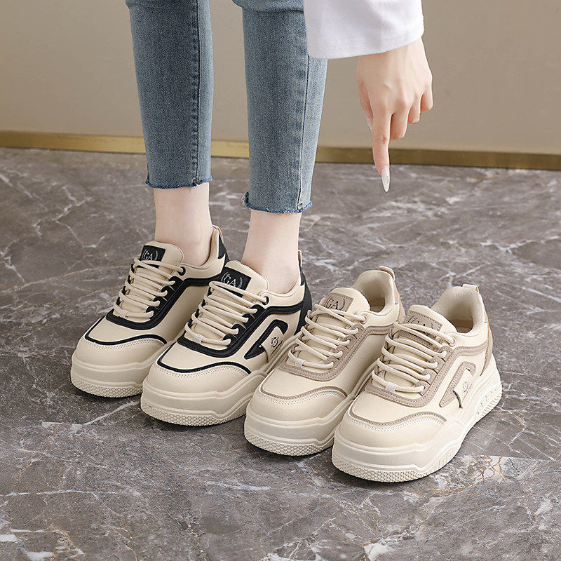 欧伦啄木鸟厚底板鞋女2026新款春季轻便防滑运动鞋真皮百搭松糕鞋