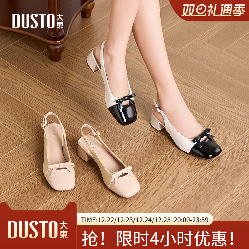 大东后空凉鞋女鞋2025夏季新款小香风拼色玛丽珍后空低跟单鞋0040