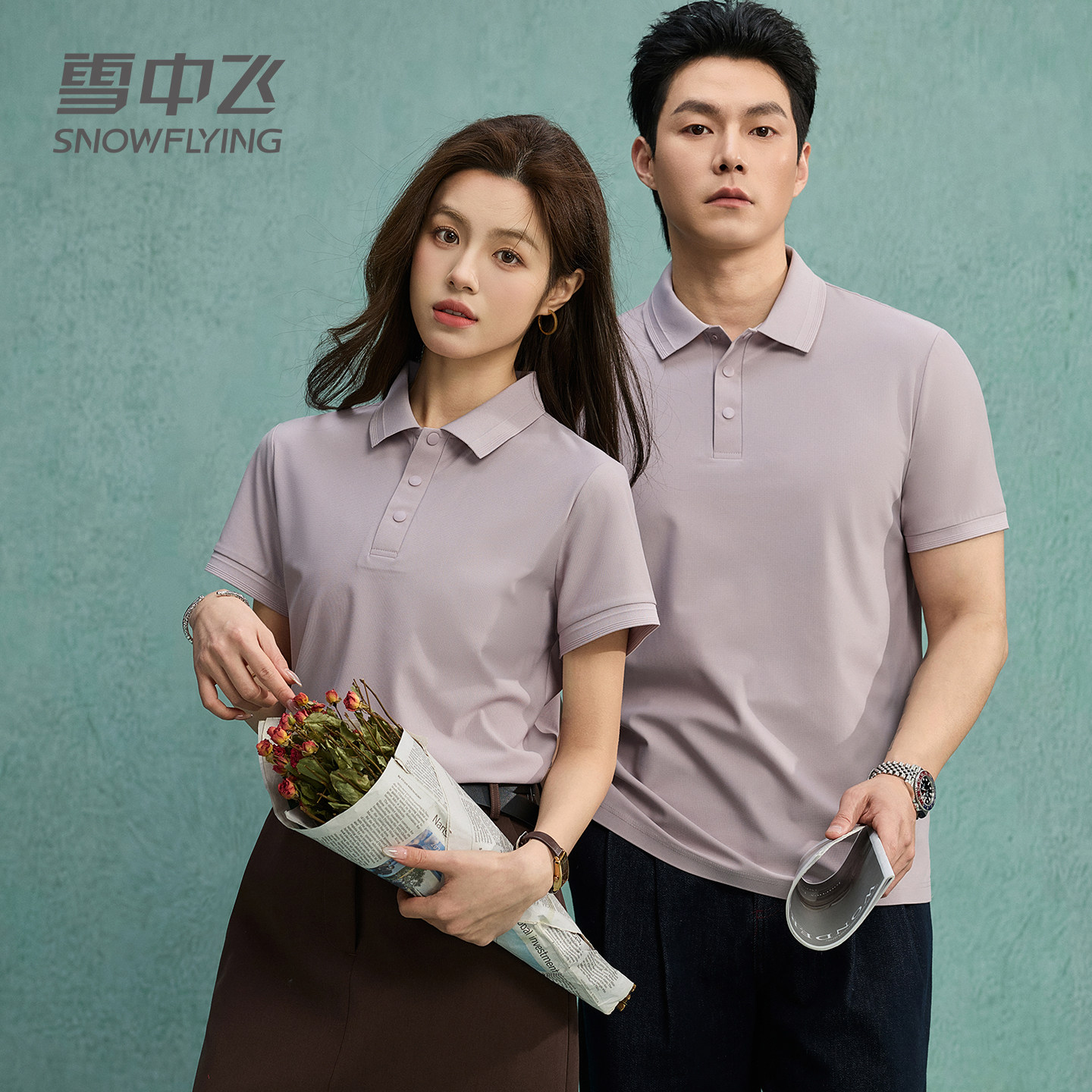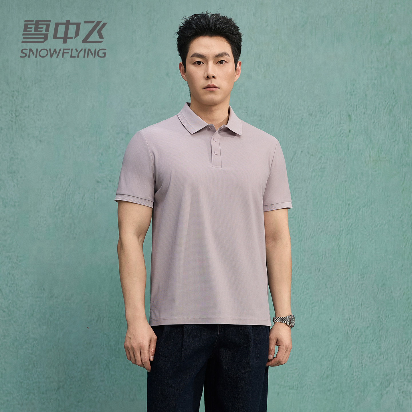 雪中飞中年短袖T恤男2026新款polo衫暗纹格子翻领夏季爸爸装衣服