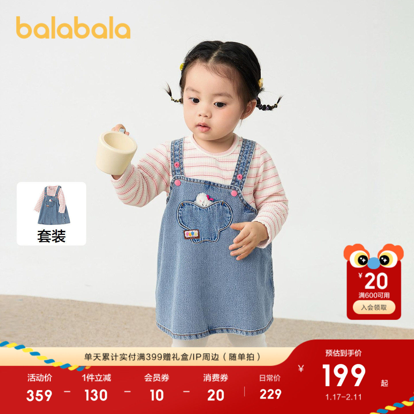 巴拉巴拉女童宝宝连衣裙子背带裙两件套2025新款秋装童装儿童甜美