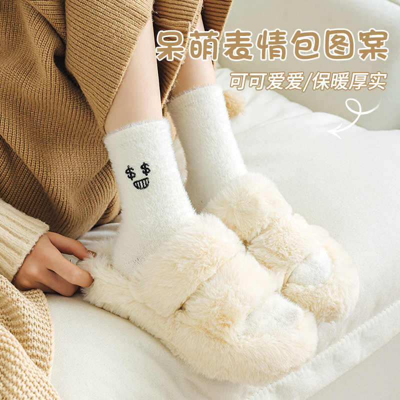 水貂绒袜子女秋冬季加厚保暖毛绒绒月子袜居家可爱冬天毛绒睡眠袜