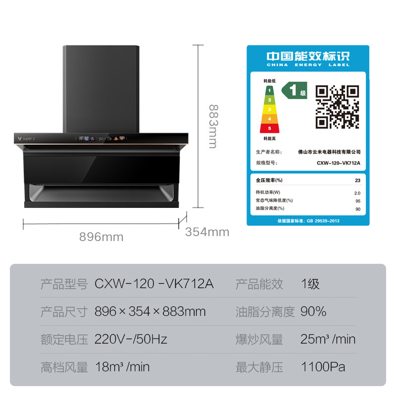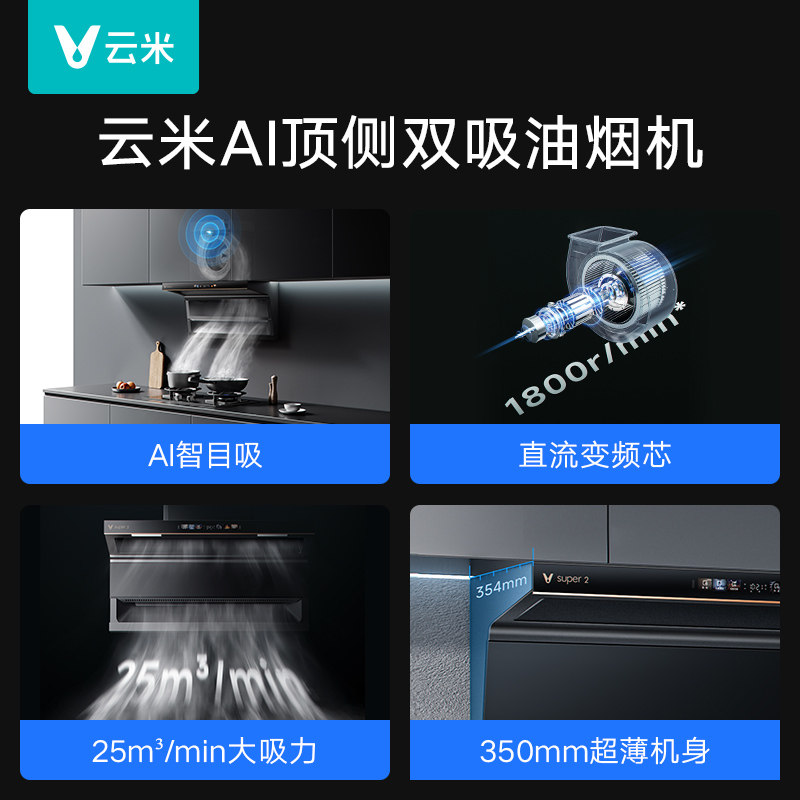 云米油烟机大吸力25㎡/min顶侧双吸自动挡免拆洗自清洁Super2