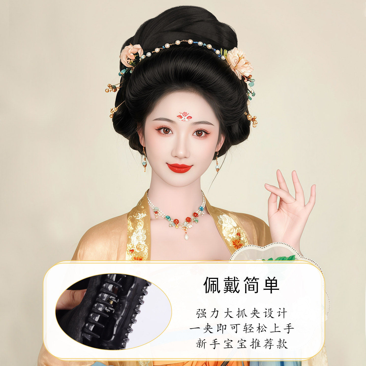 古风汉服假发抓夹一体式全发丝发包古装扶摇造型明制唐风发髻头饰