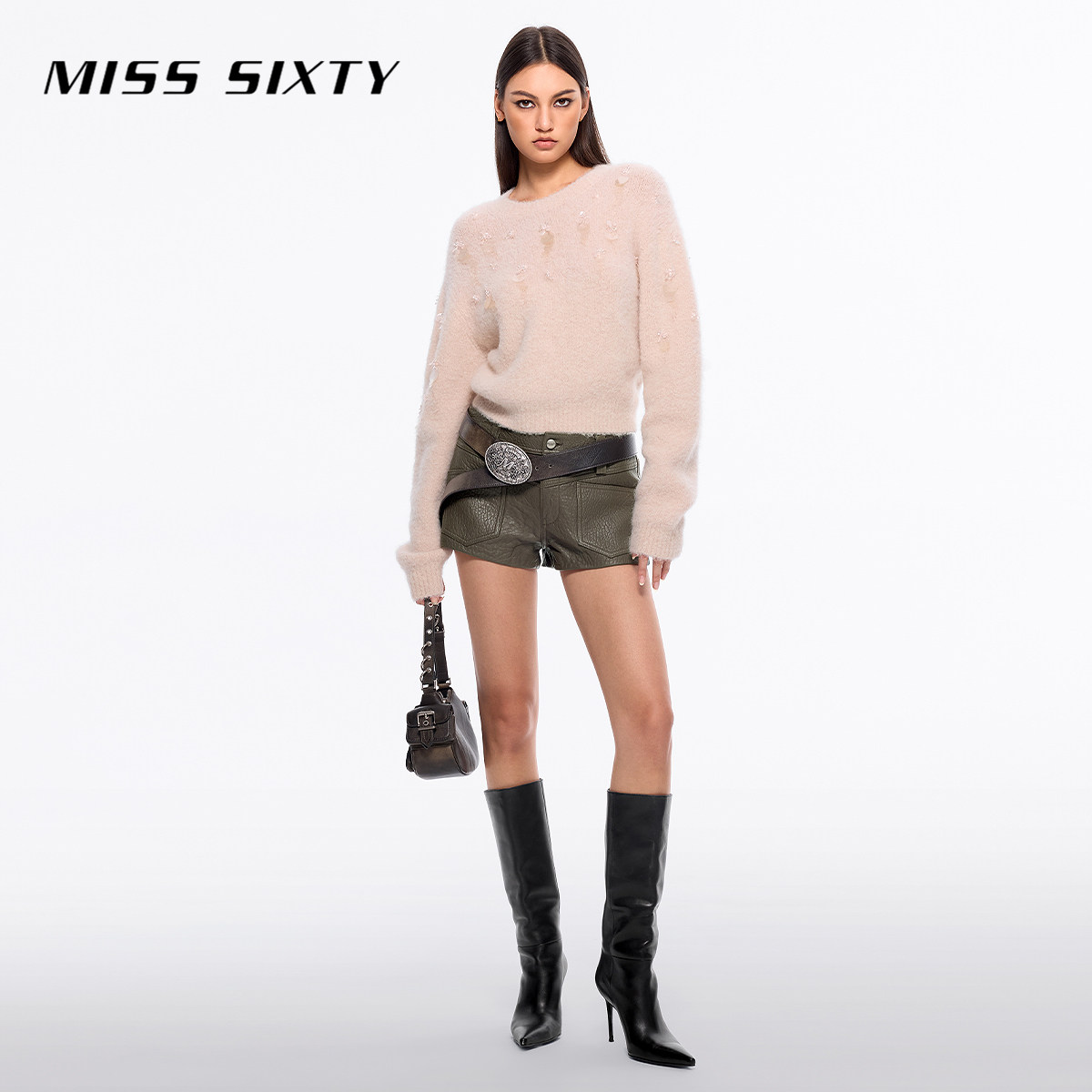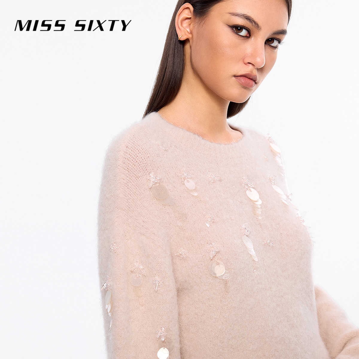 【闪耀派对】【保暖羊驼毛】Miss Sixty针织衫女重工钉珠毛衣温柔