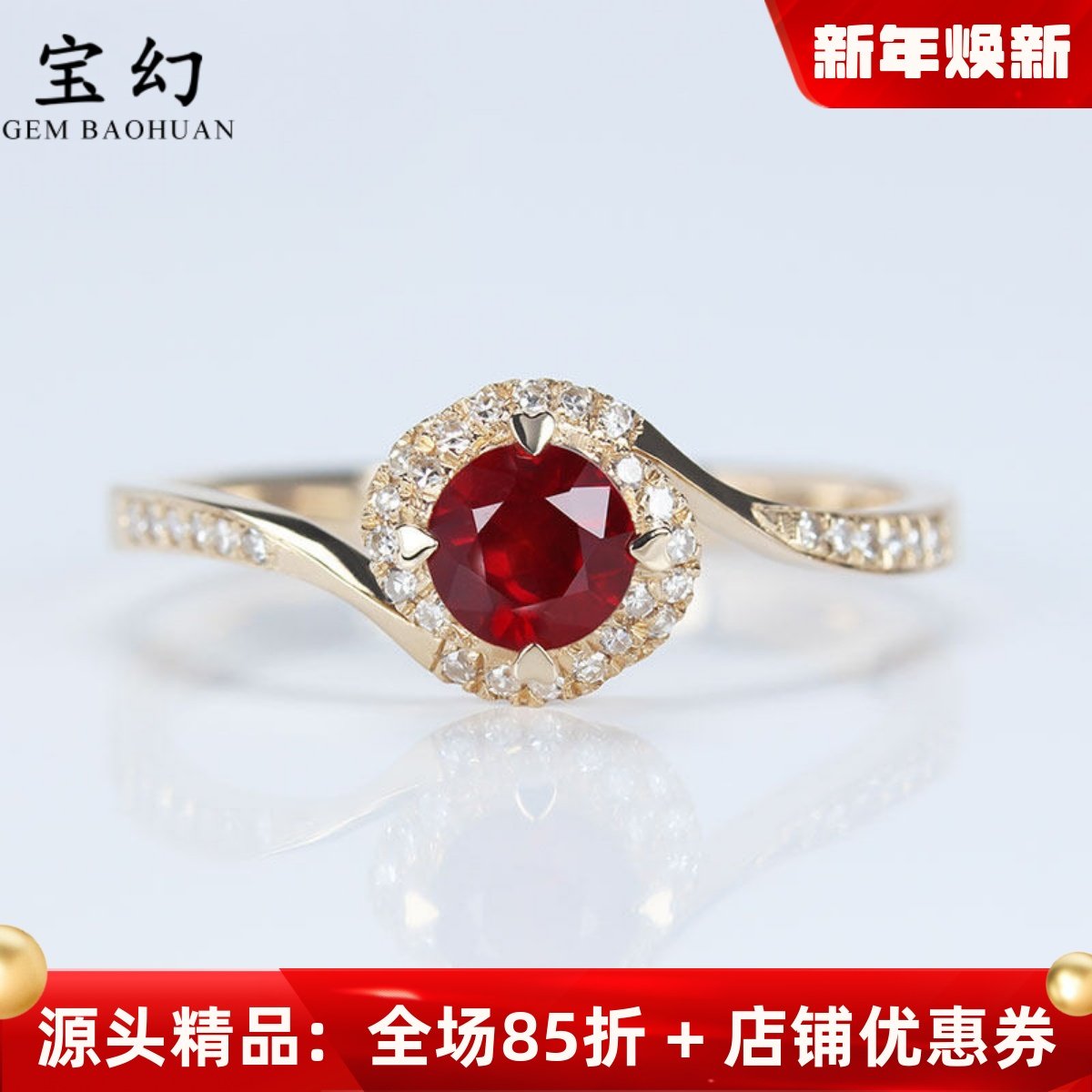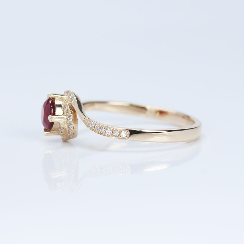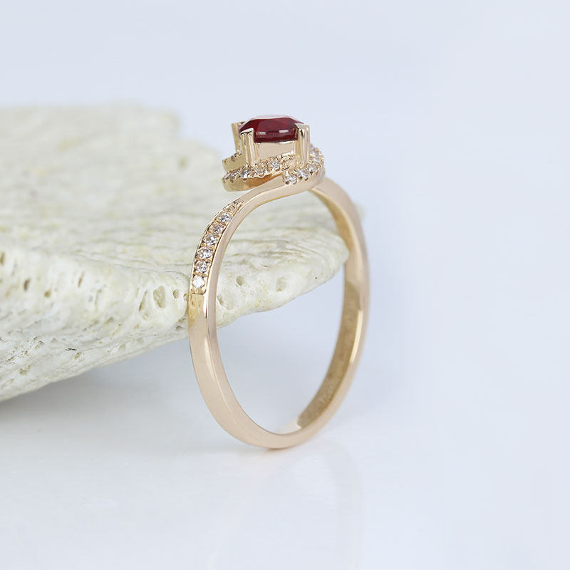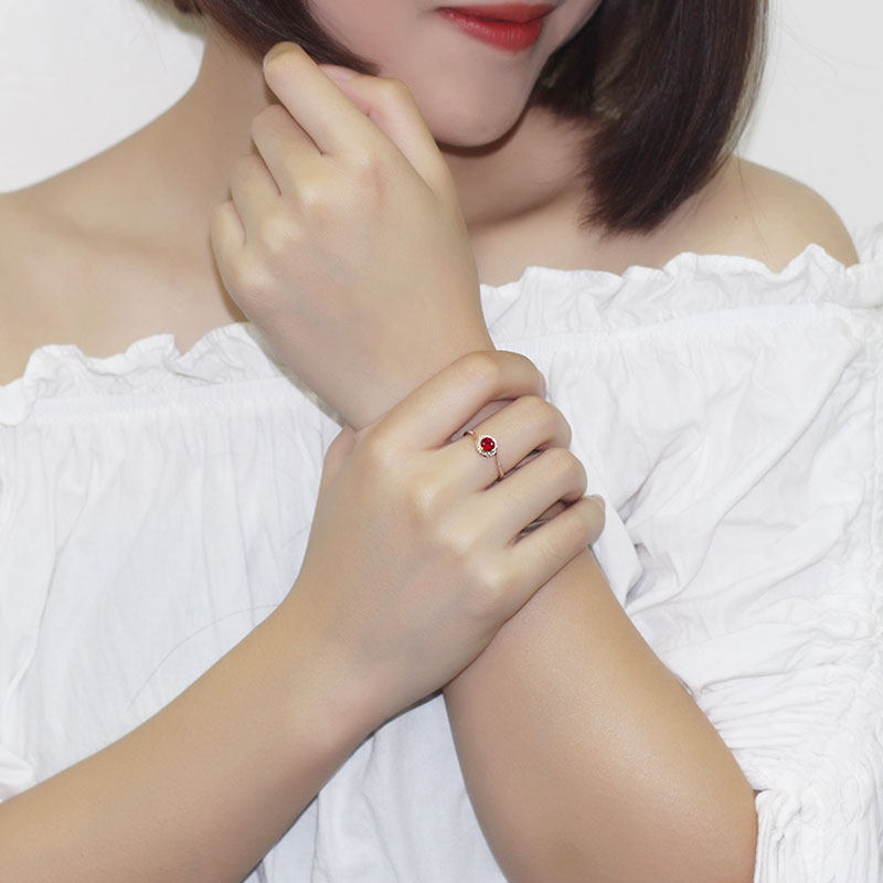 18K玫瑰金天然鸽血红宝石戒指 镶钻石心形爪玫瑰花款求结婚指环女